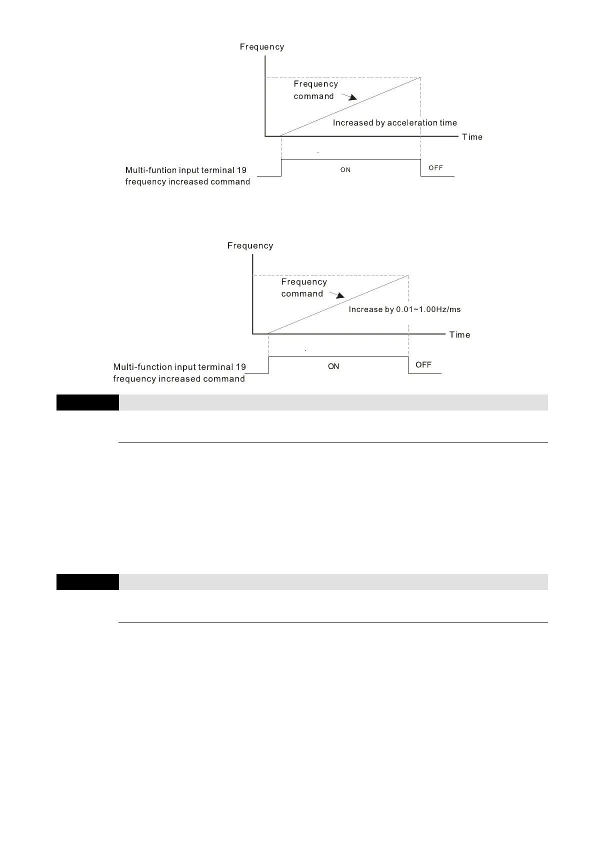 The increasing or decreasing Frequency command (F) operates according to the setting of