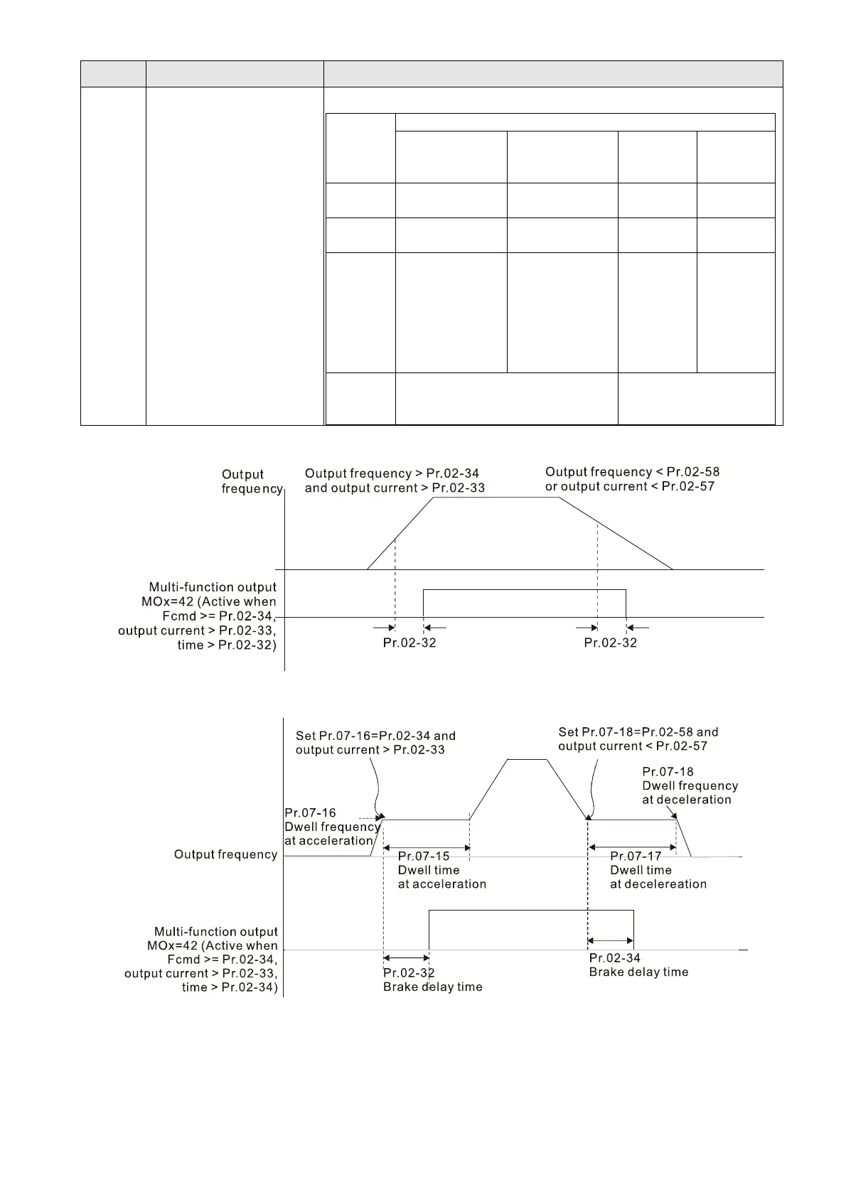 When using the crane application and MOx = 42, Pr.02-34 must be larger than Pr.02-58; Pr.02-