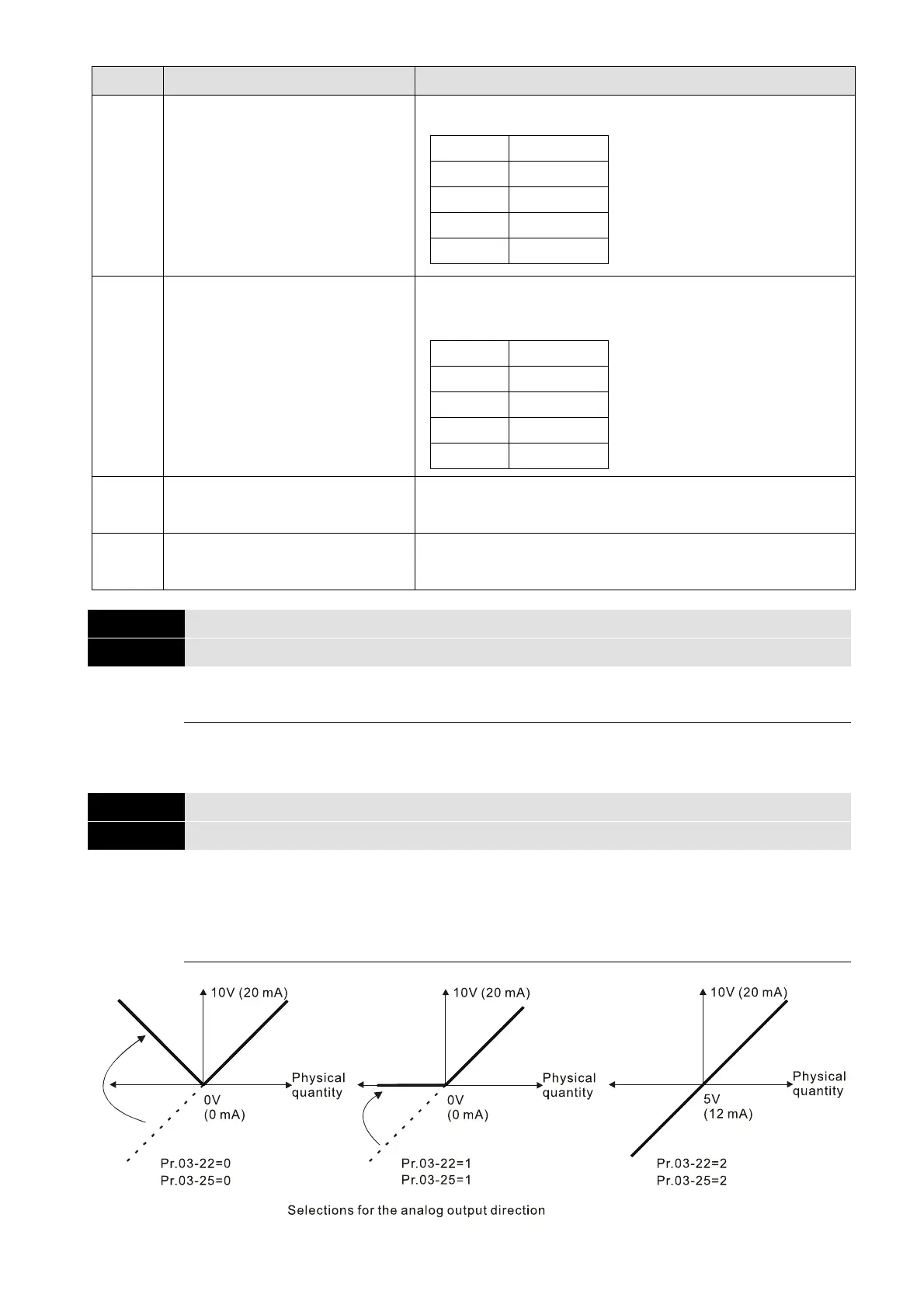Pr.03-32 and Pr.03-33 control the voltage output level.