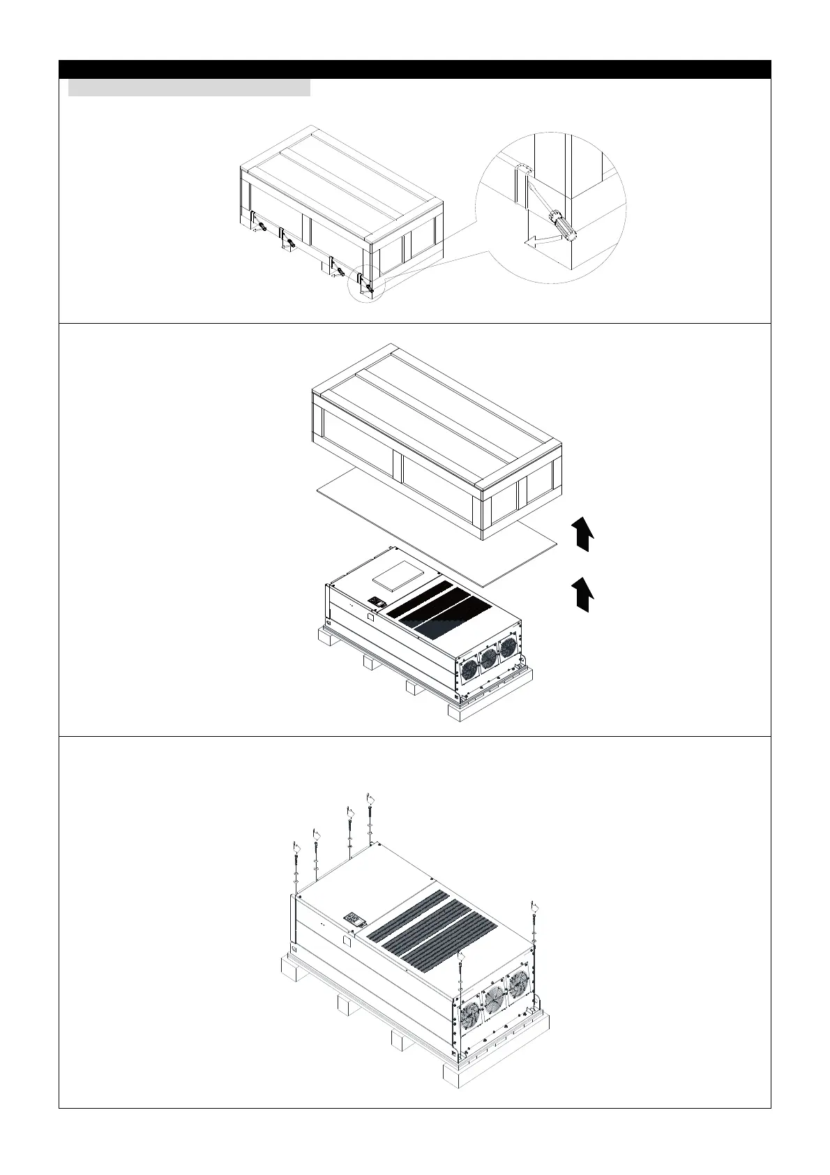 Remove the eight buckles fixed on the crate with a flat-head screwdriver, see the figure below.