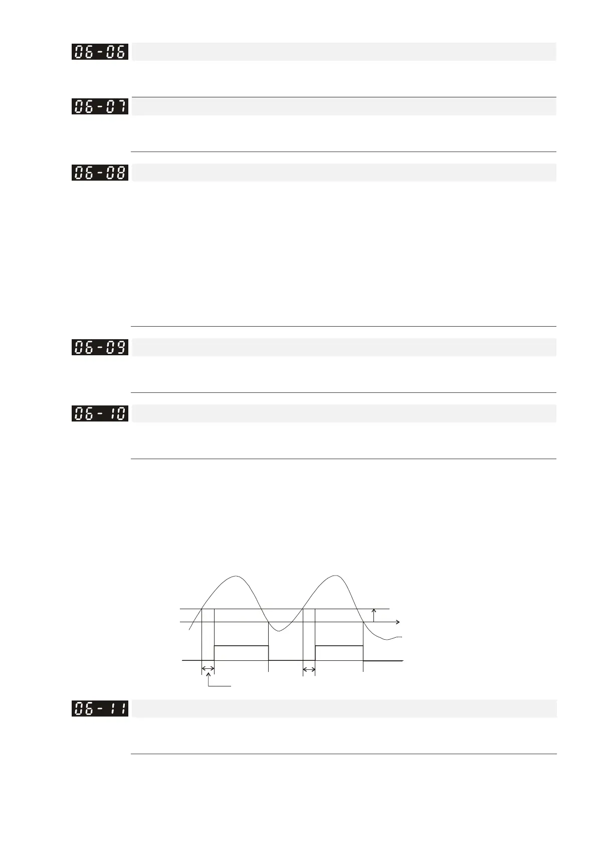 Pr.06-05 and Pr.06-08 determine the drive’s operating mode after over-torque is detected.