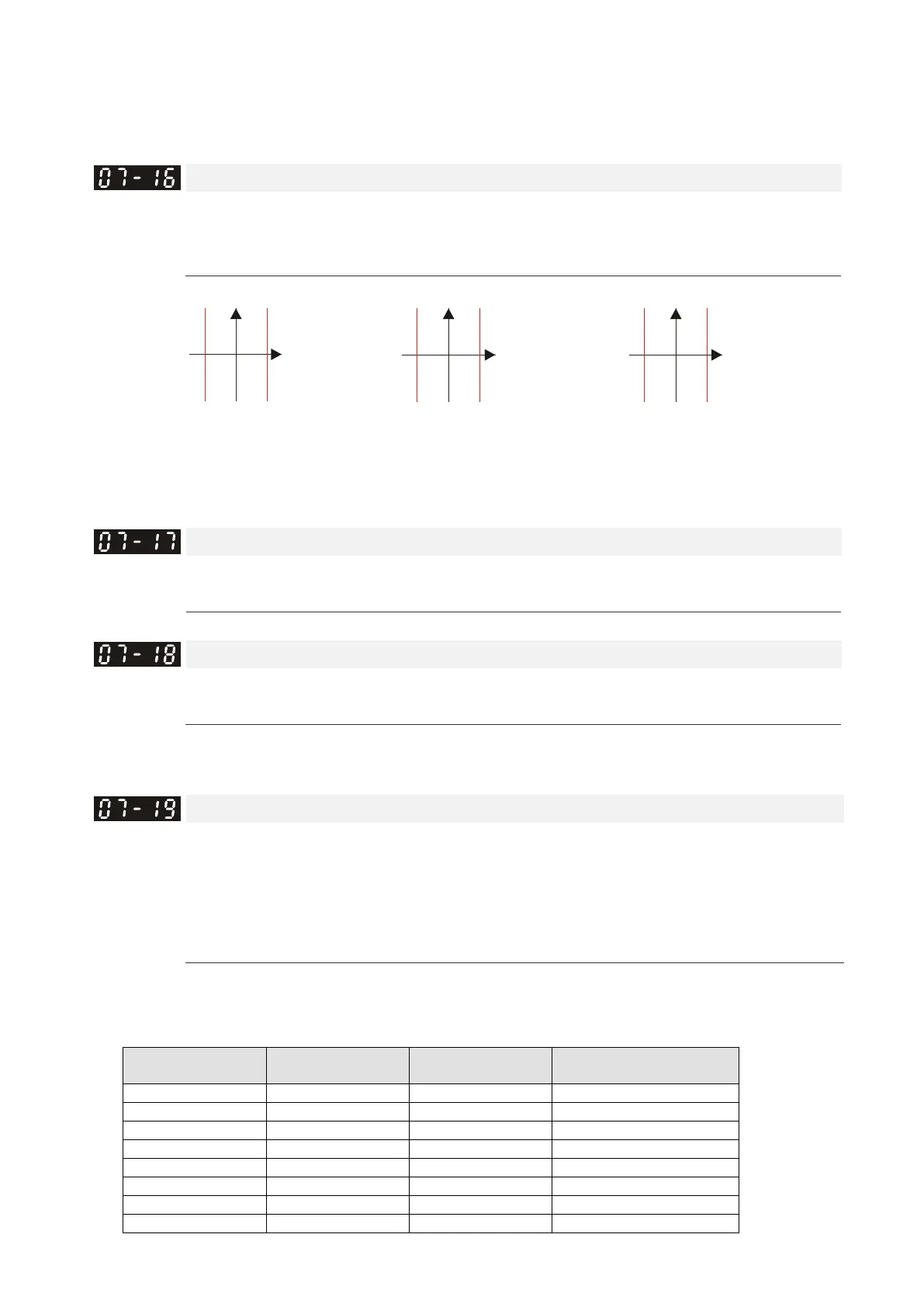 Settings 0: Use the settings in Pr.07-17 and Pr.07-18