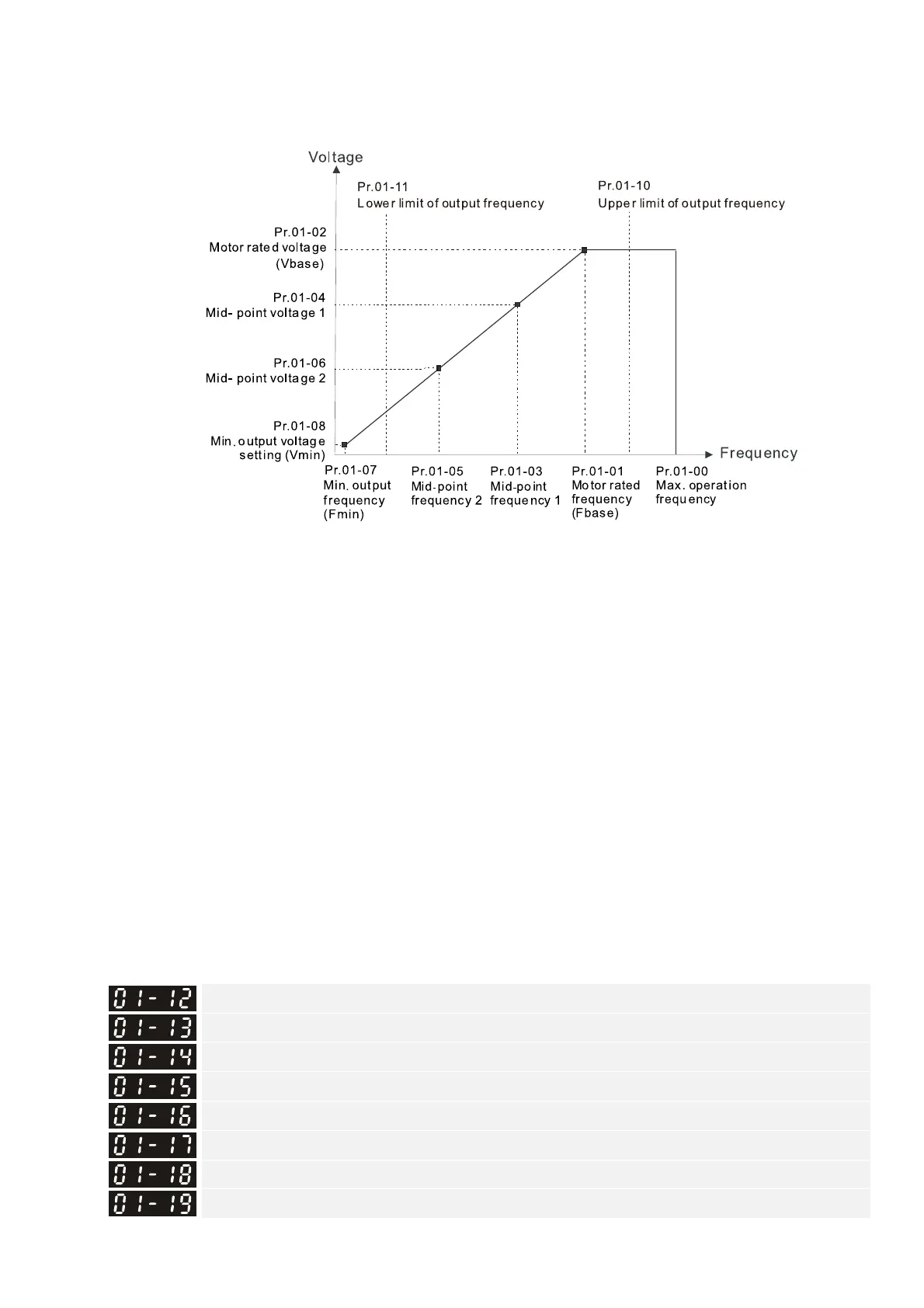 Related parameters: Pr. 01-00 Maximum Operation Frequency and Pr. 01-11 Output Frequency
