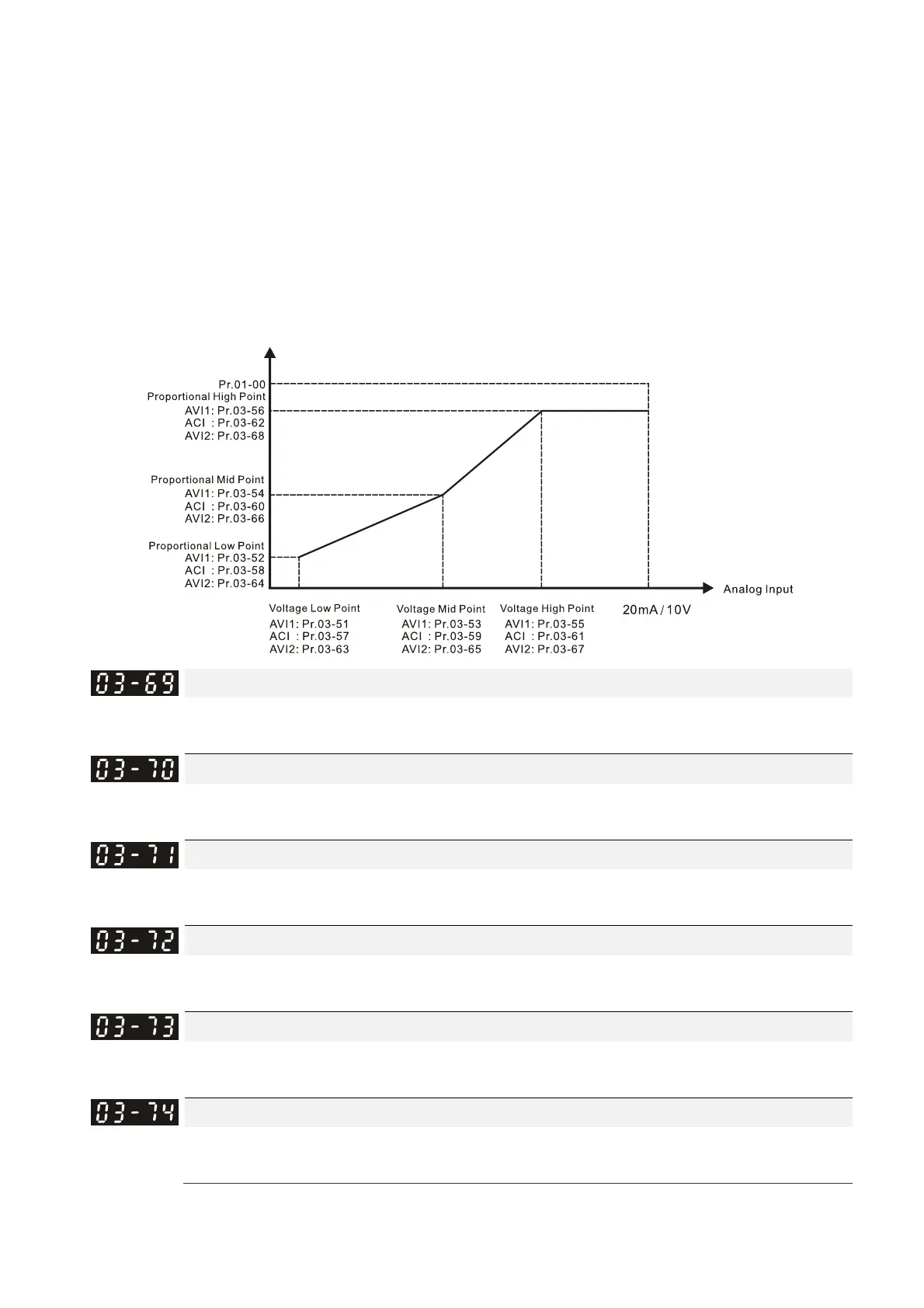 03-65 < Pr. 03-67. The values for three proportional points (Pr. 03-64, Pr. 03-66 and Pr. 03-68)