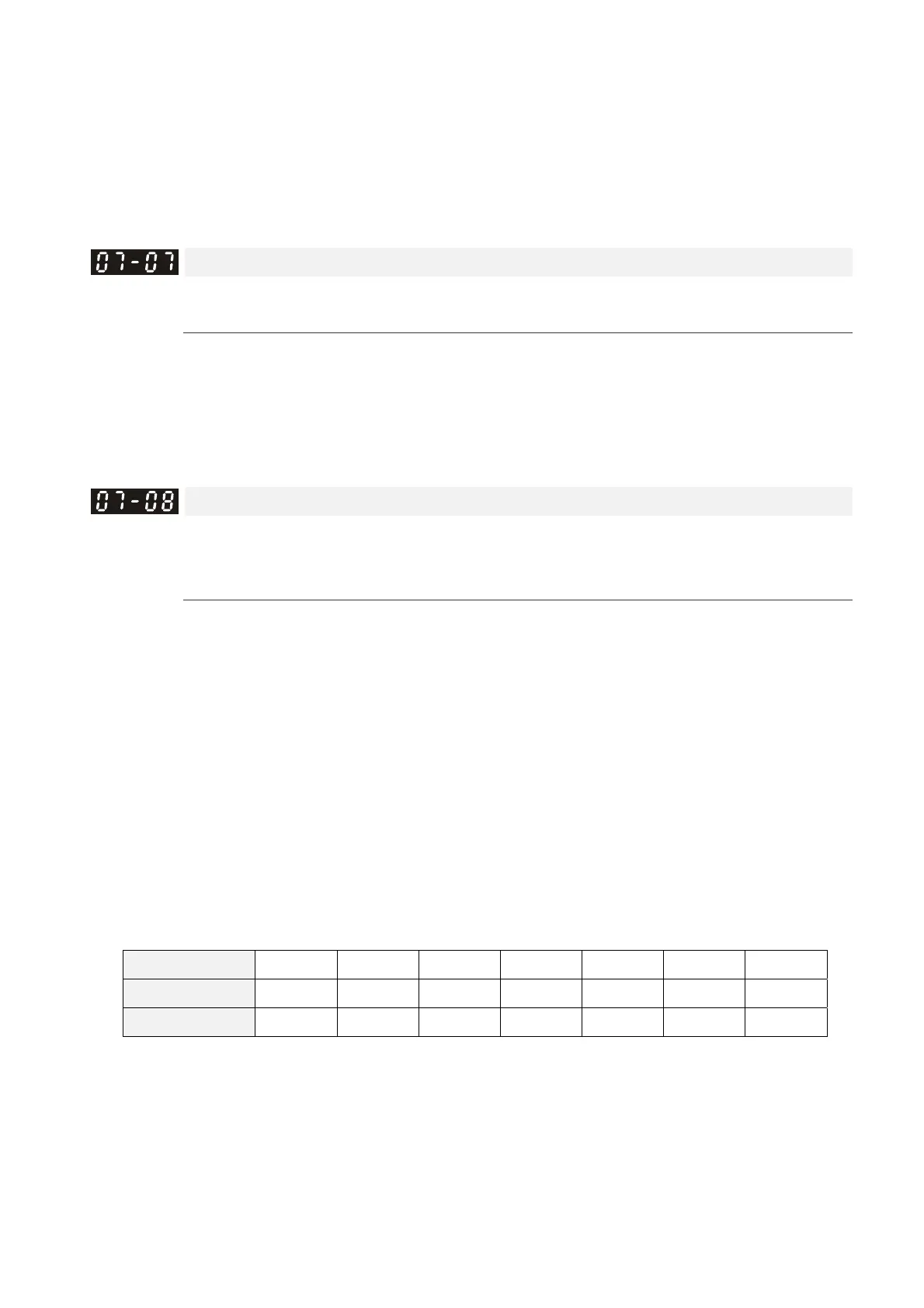 set Pr. 07-08 according to this table (the default of each model power is based on this table as