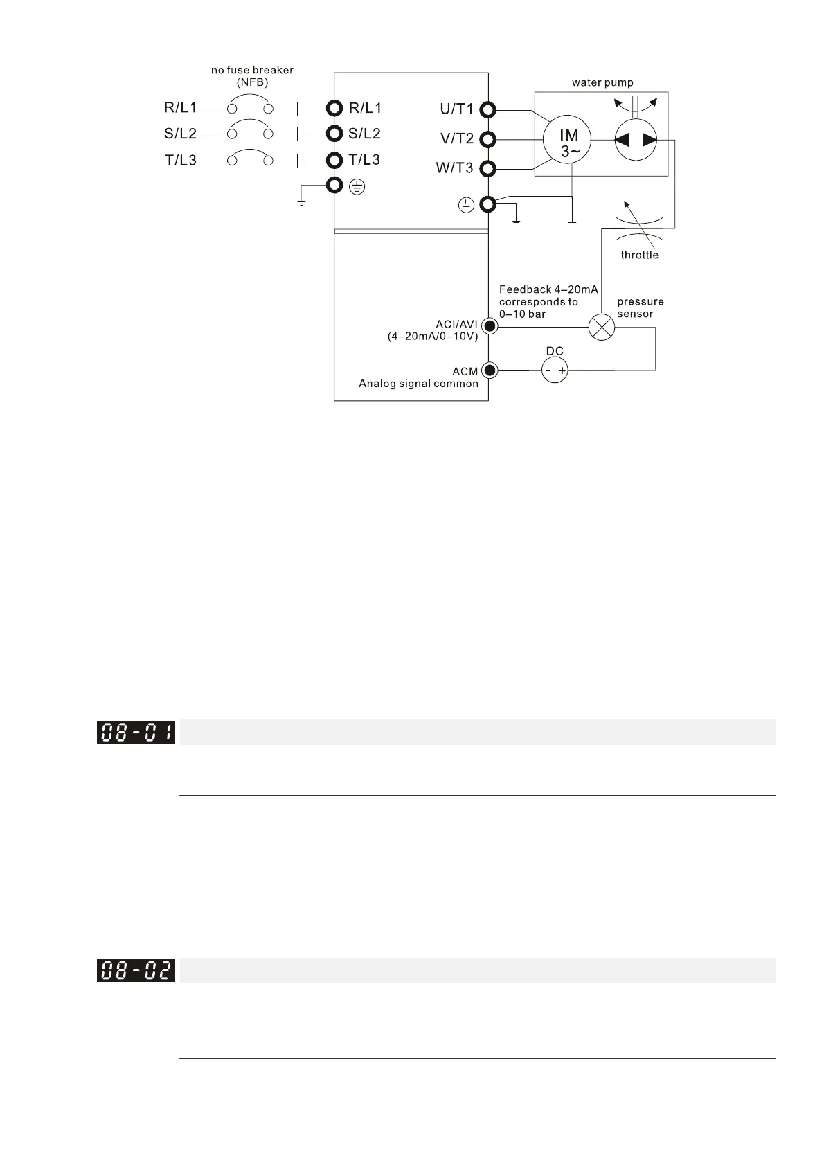 Pr. 08-01–08-03 is set according to actual conditions: