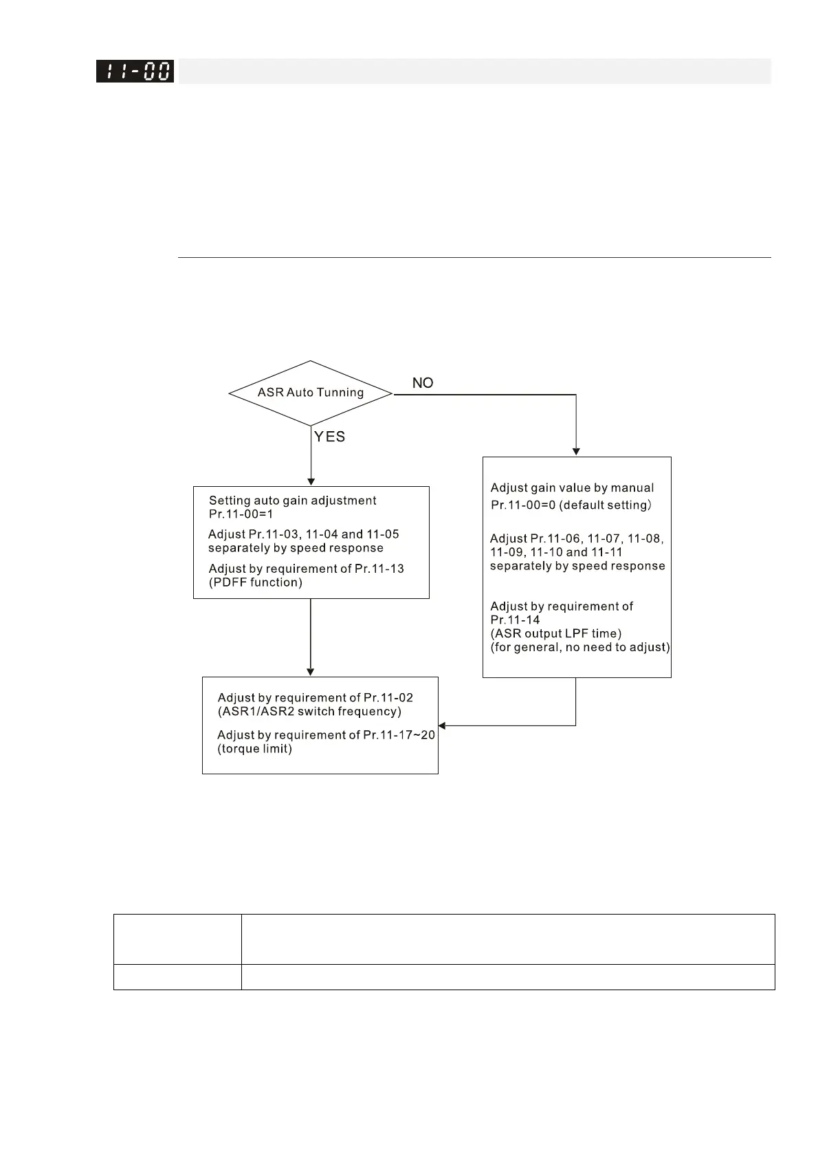 bit0=0: Manual adjustment for ASR and APR gain, Pr.11-06–Pr.11-11 are valid and