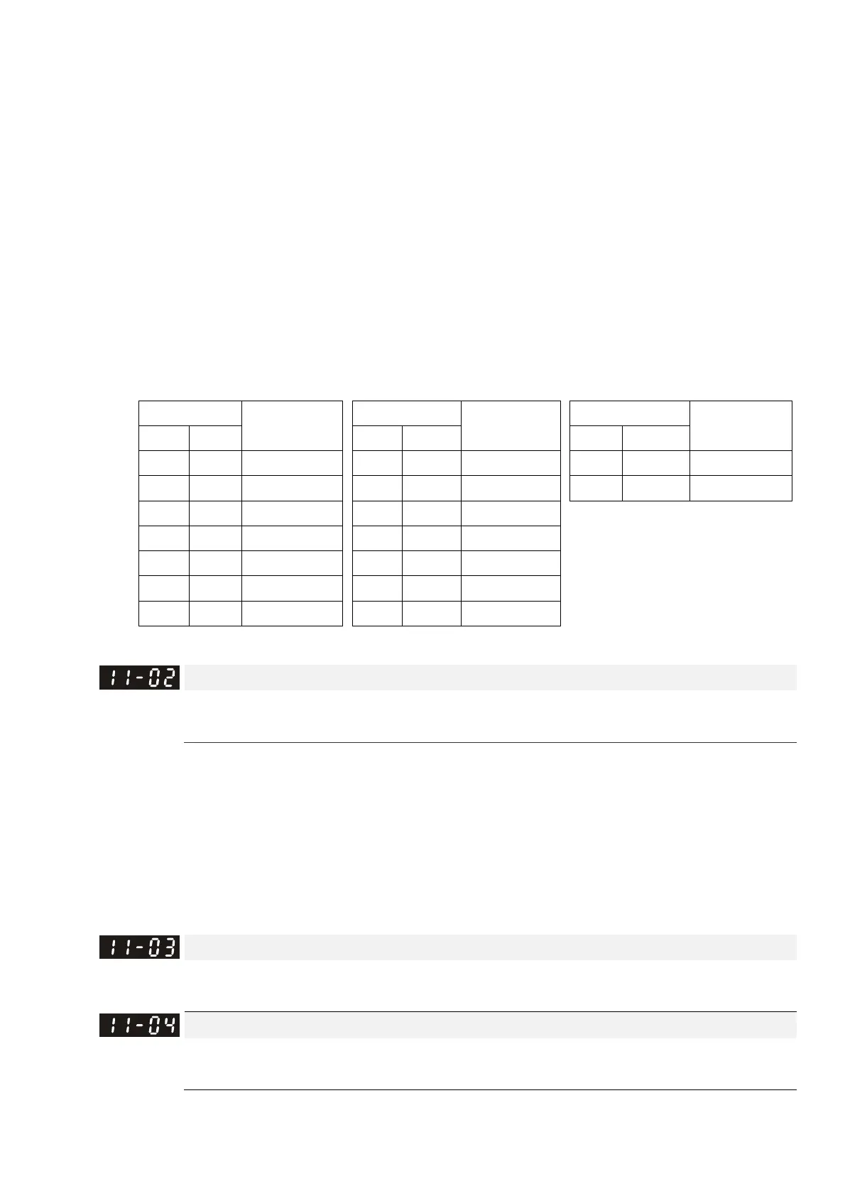 according to the table below. If Pr.11-01 = 10000 after tuning, the system inertia is (10000 / 256)