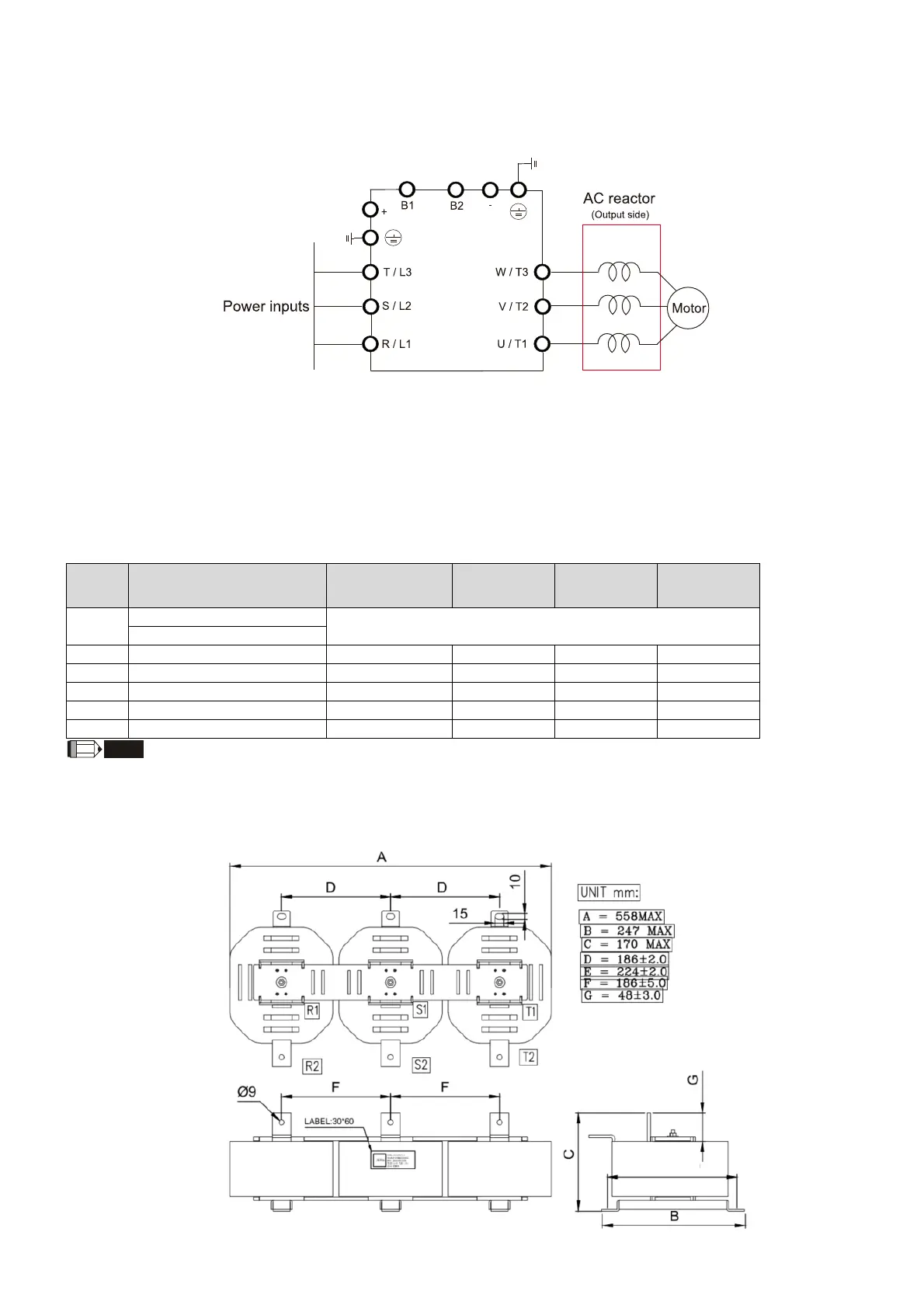 AC output reactor is serially connected between the drive U/ V/ W output side and the motor,