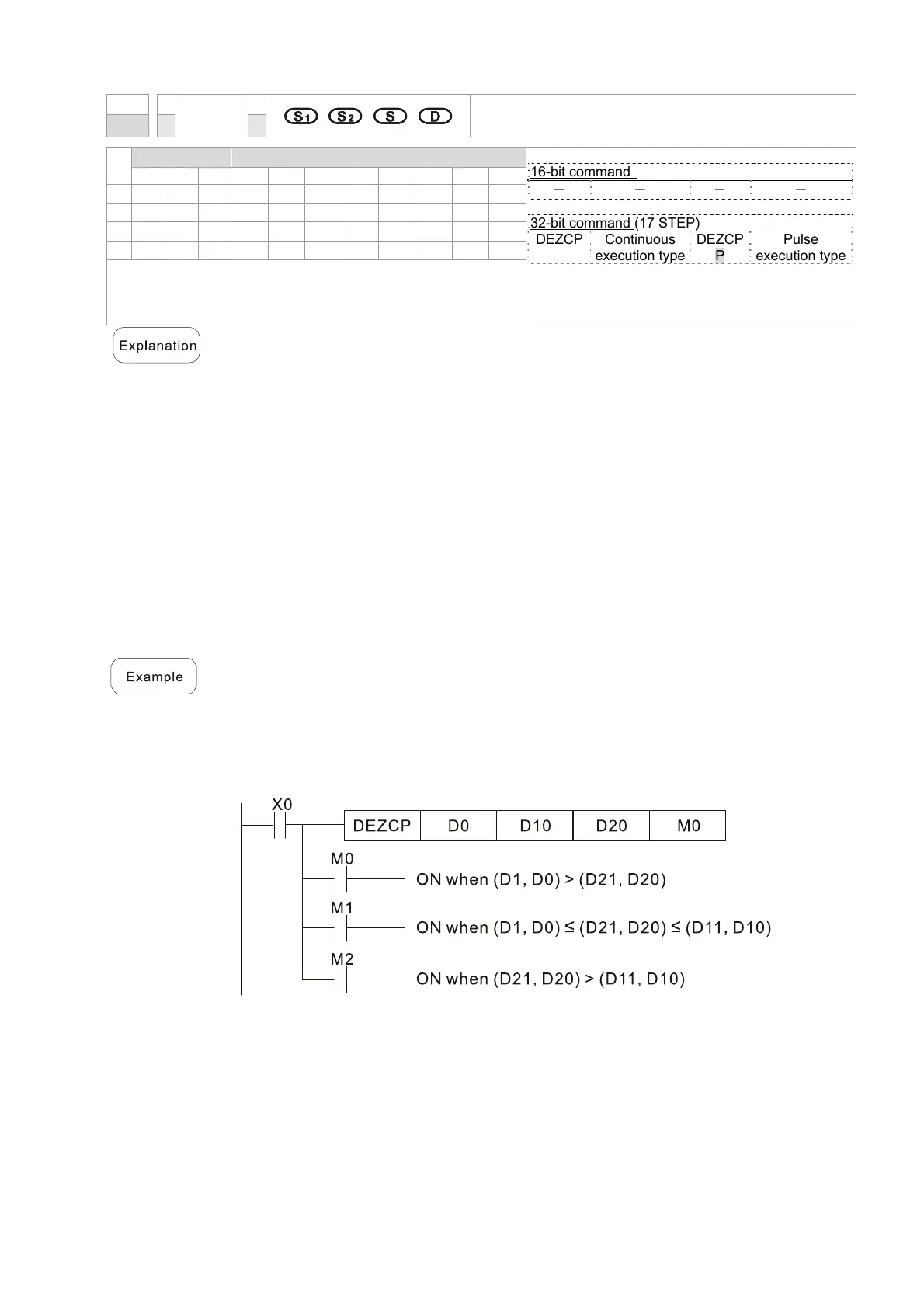 When X0=On, the DEZCP command will be executed, and one of M0~M2 will be