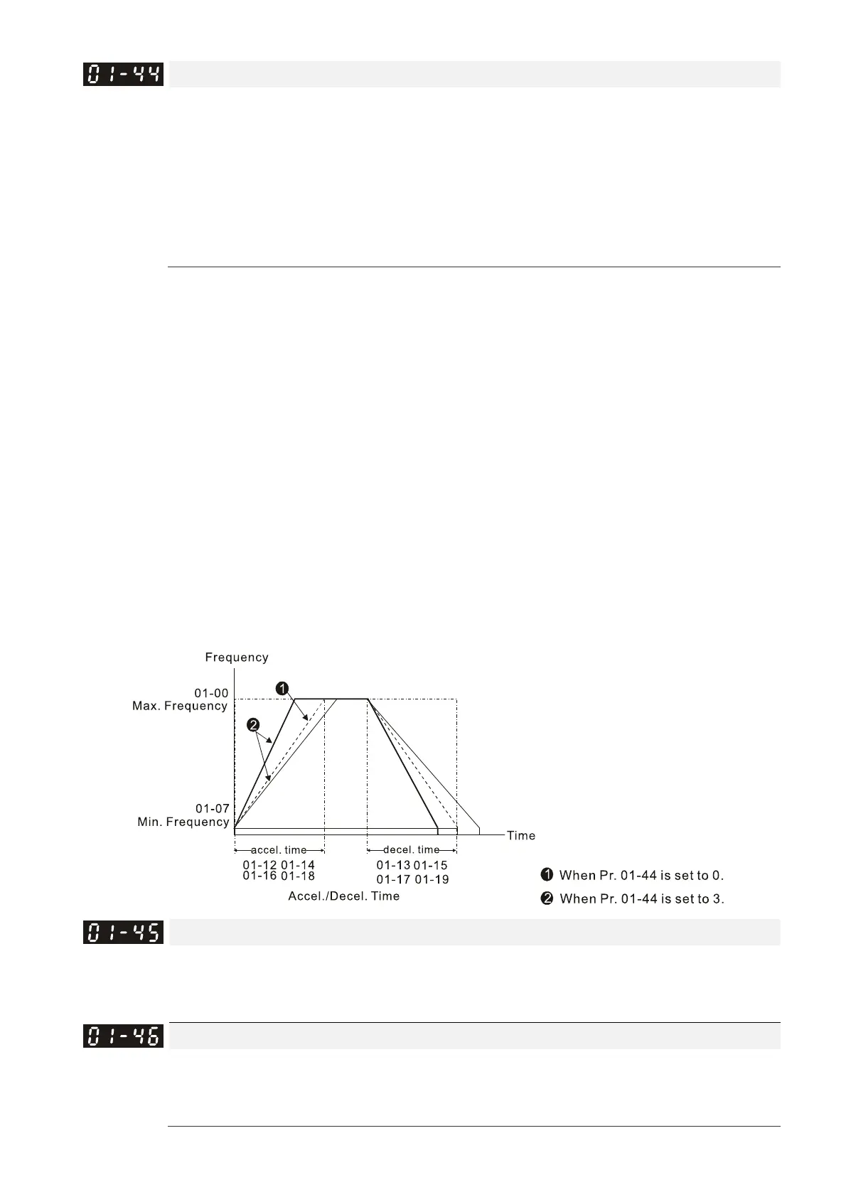 decelerates according to Pr.01-12–01-19. If the acceleration and deceleration time is too short,