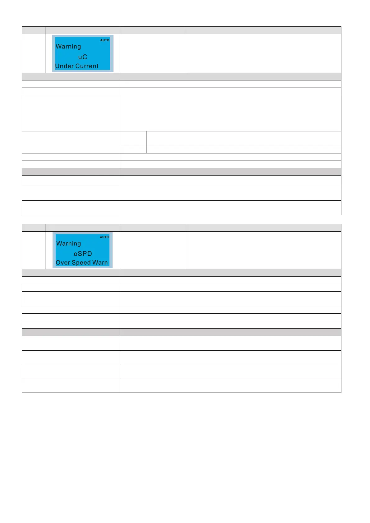 “Warning” occurs when Pr.06-73=3. The “Warning” automatically