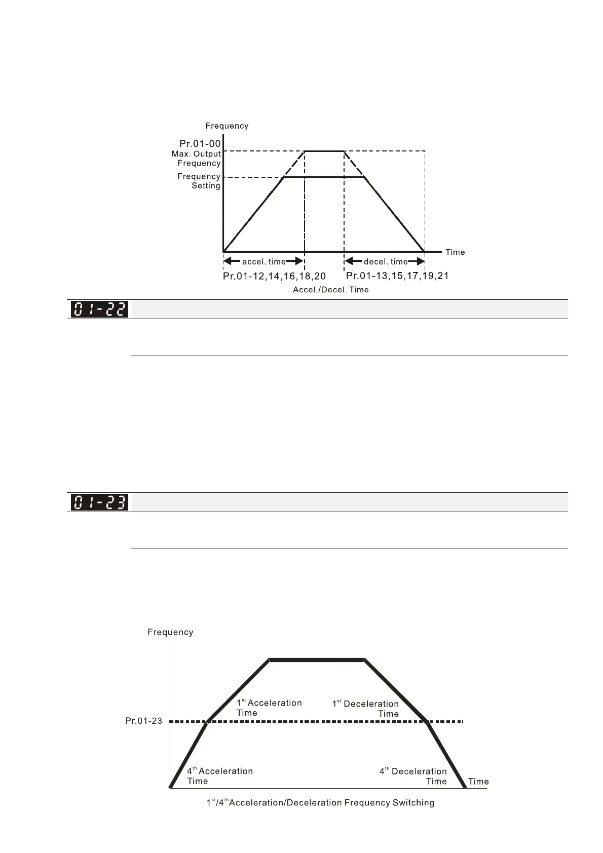 acceleration and deceleration time automatically by the Pr.01-23 setting. If you set the external