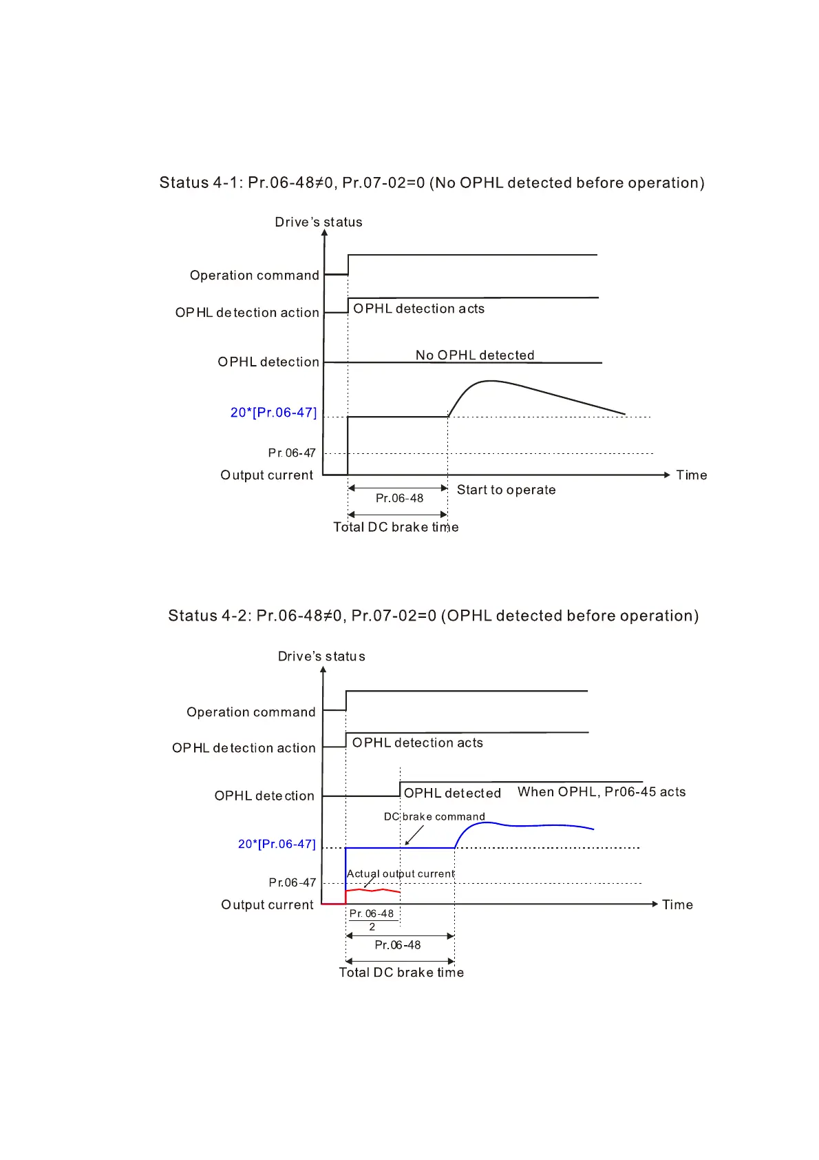 times the Pr.06-47 setting value. In this period, if an OPHL happens within the time for Pr.06-48,
