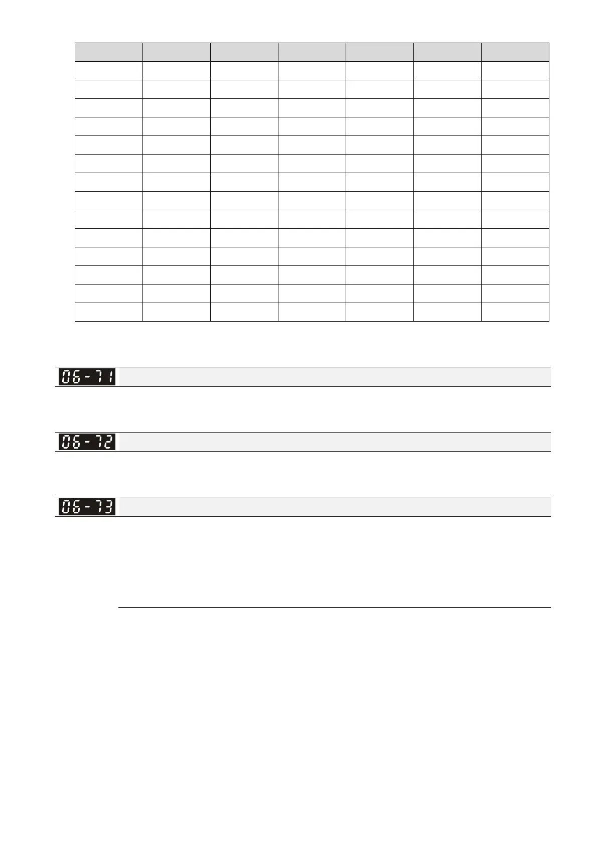 setting for Pr.06-71 and when the time of the low current exceeds the detection time for Pr.06-72.