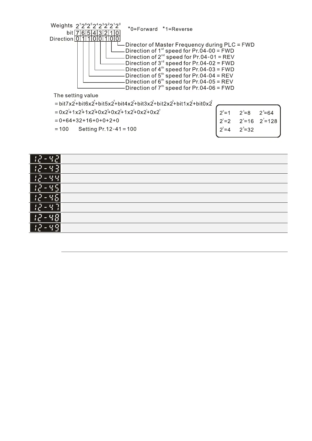 Pr.12-42 to Pr.12-49 correspond to the operation time for each multi-step speed defined.