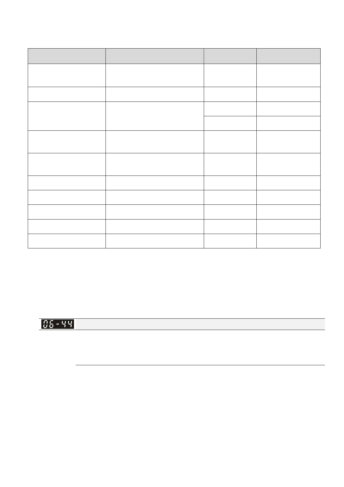All of the STL1–STL3 errors are “Alarm Latch” mode (in STL1–STL3 mode, the Pr.06-44 function