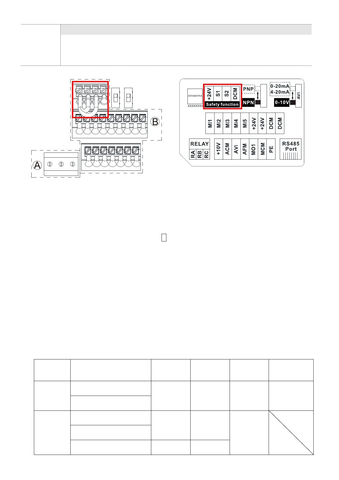 As 1. and 2. shows in the figure above, +24 V, S1, S2, and DCM are for STO only.