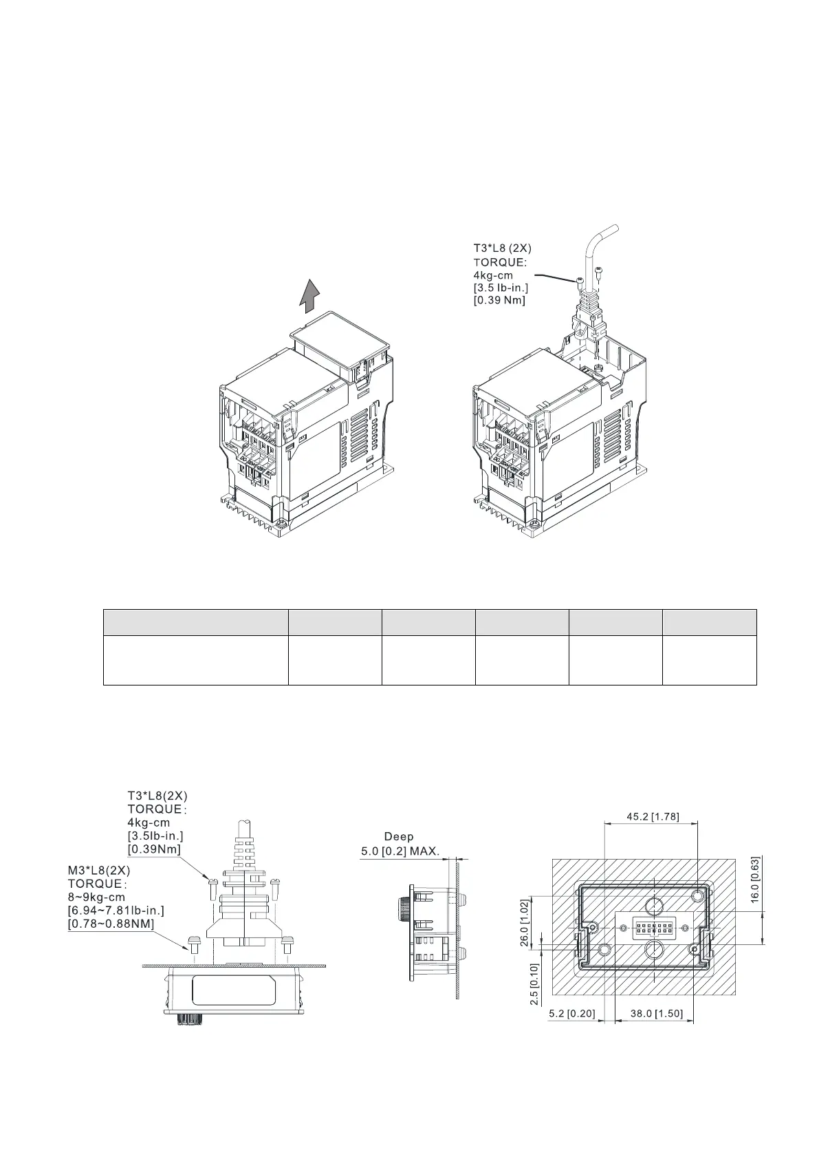 In order to avoid the motor damage, please be sure to refer to the screw size and torque values to