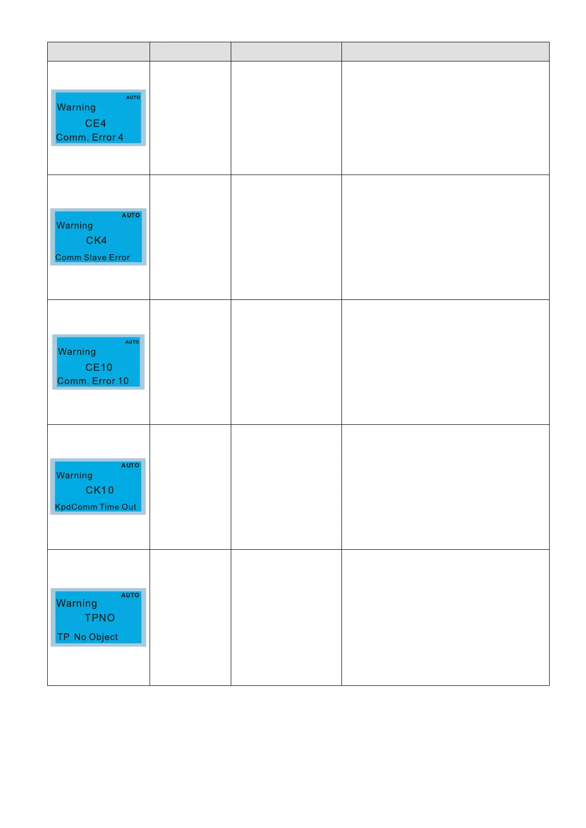 NOTE: The warning code CExx only occurs when the communication problem is between the drive and