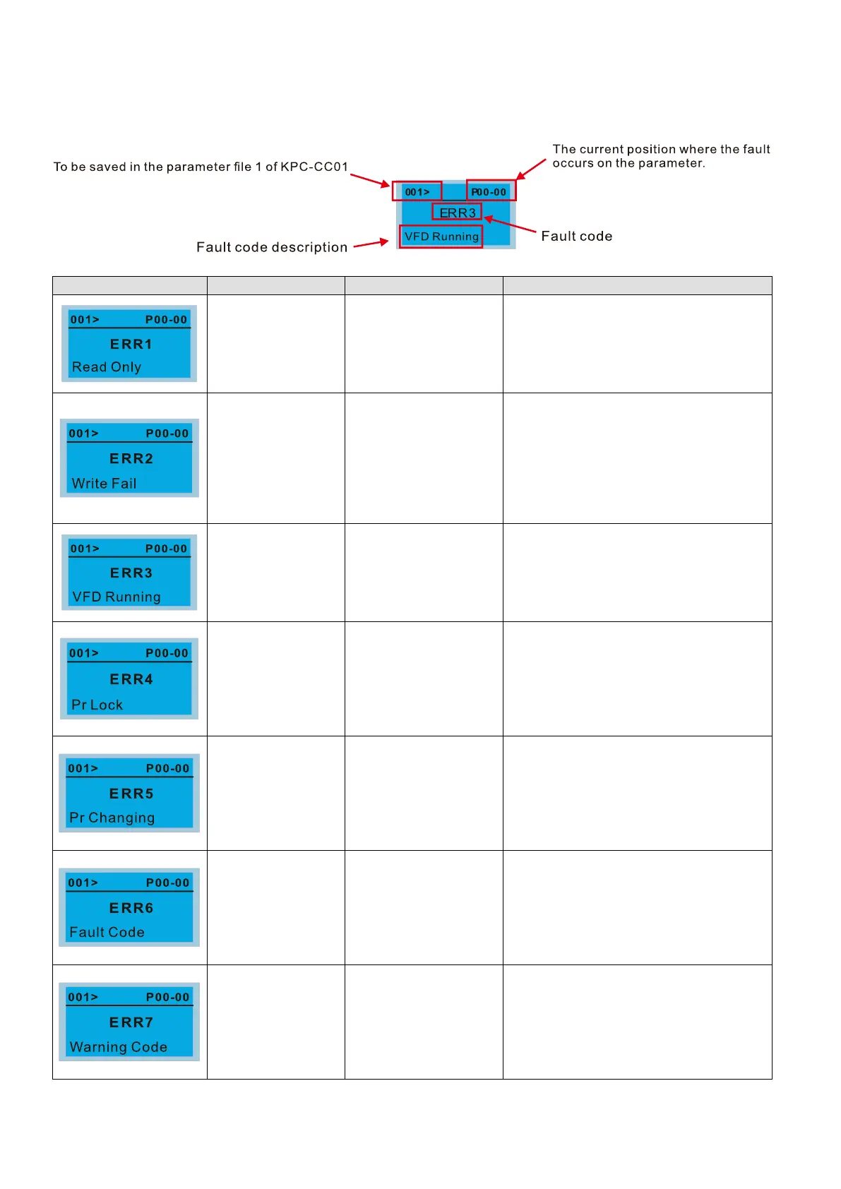 These faults occur when KPC-CC01 cannot perform the command after clicking the ENTER key in the