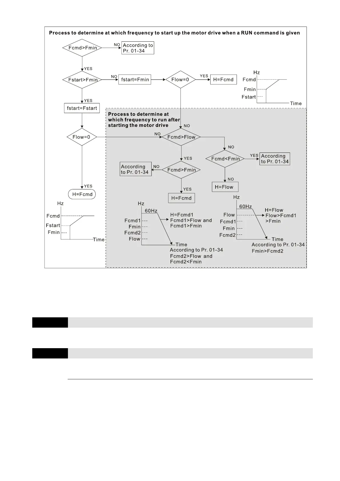 If Flow Fcmd, the drive runs with Fcmd, and then rises to Flow according to acceleration time.
