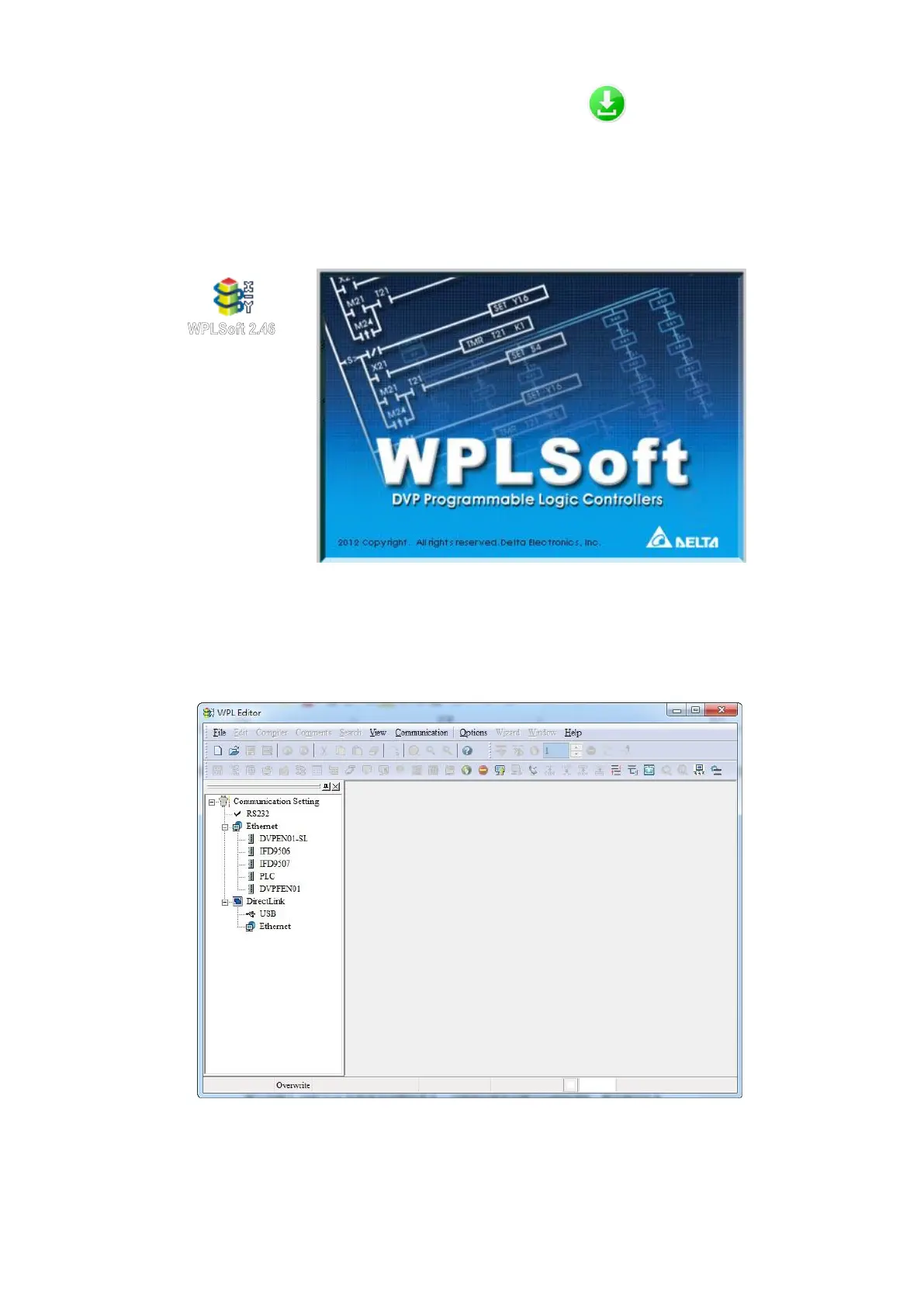Figure 16-8 Left: WPLSoft icon; right: start screen