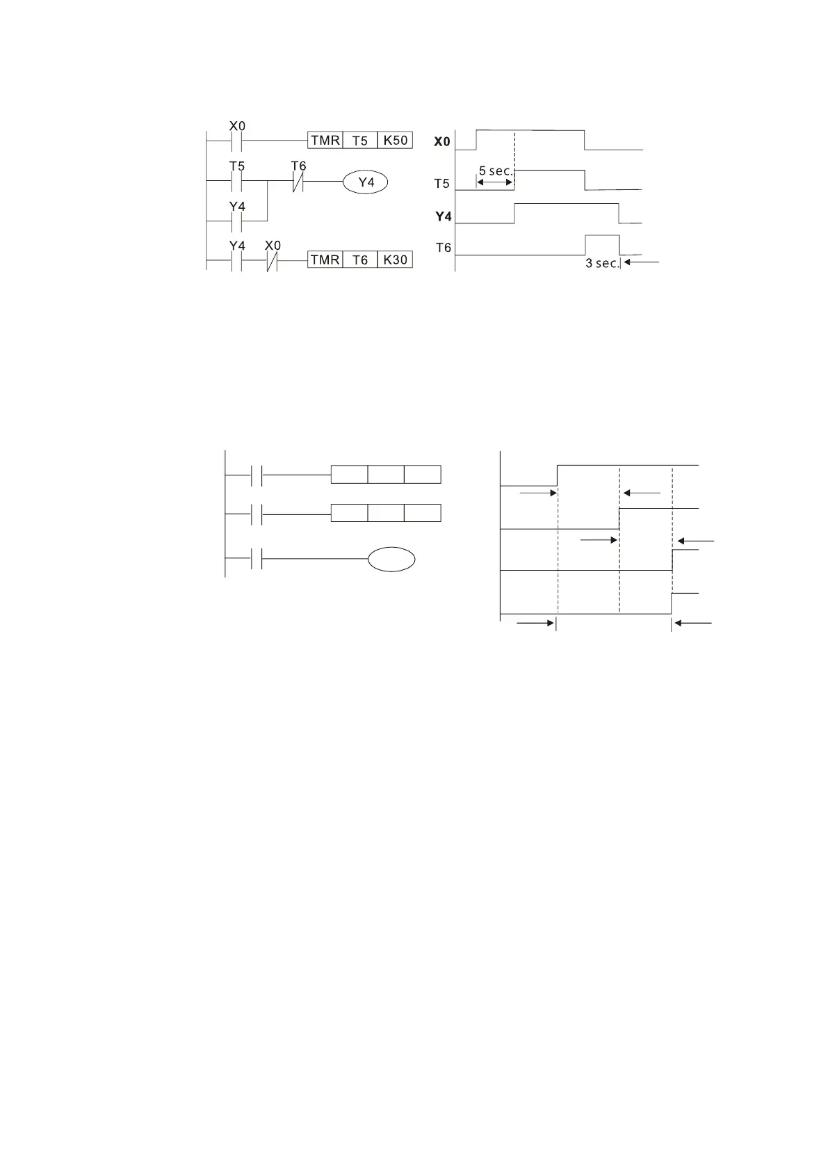 Example 11: The open/close delay circuit is composed of two timers; output Y4 has a delay no matter