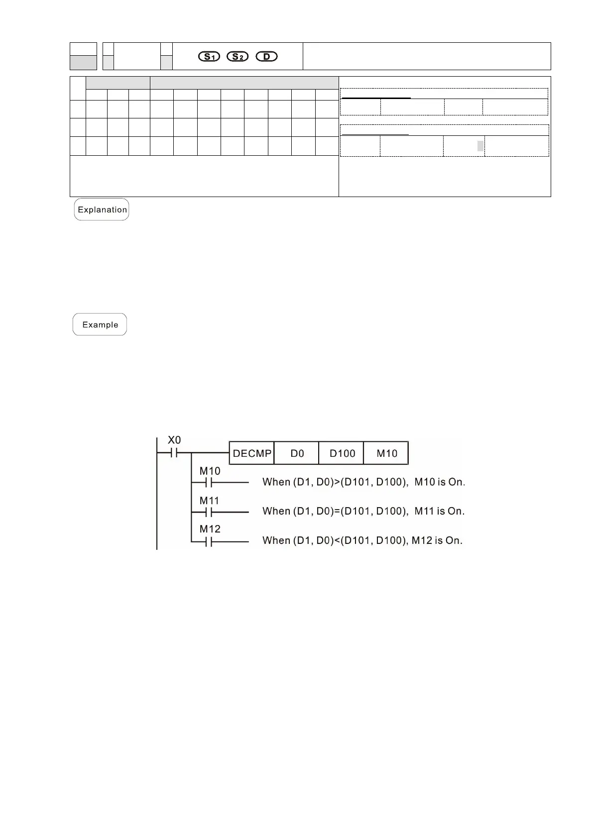 When X0 = OFF, the DECMP command does not execute, and M10–M12