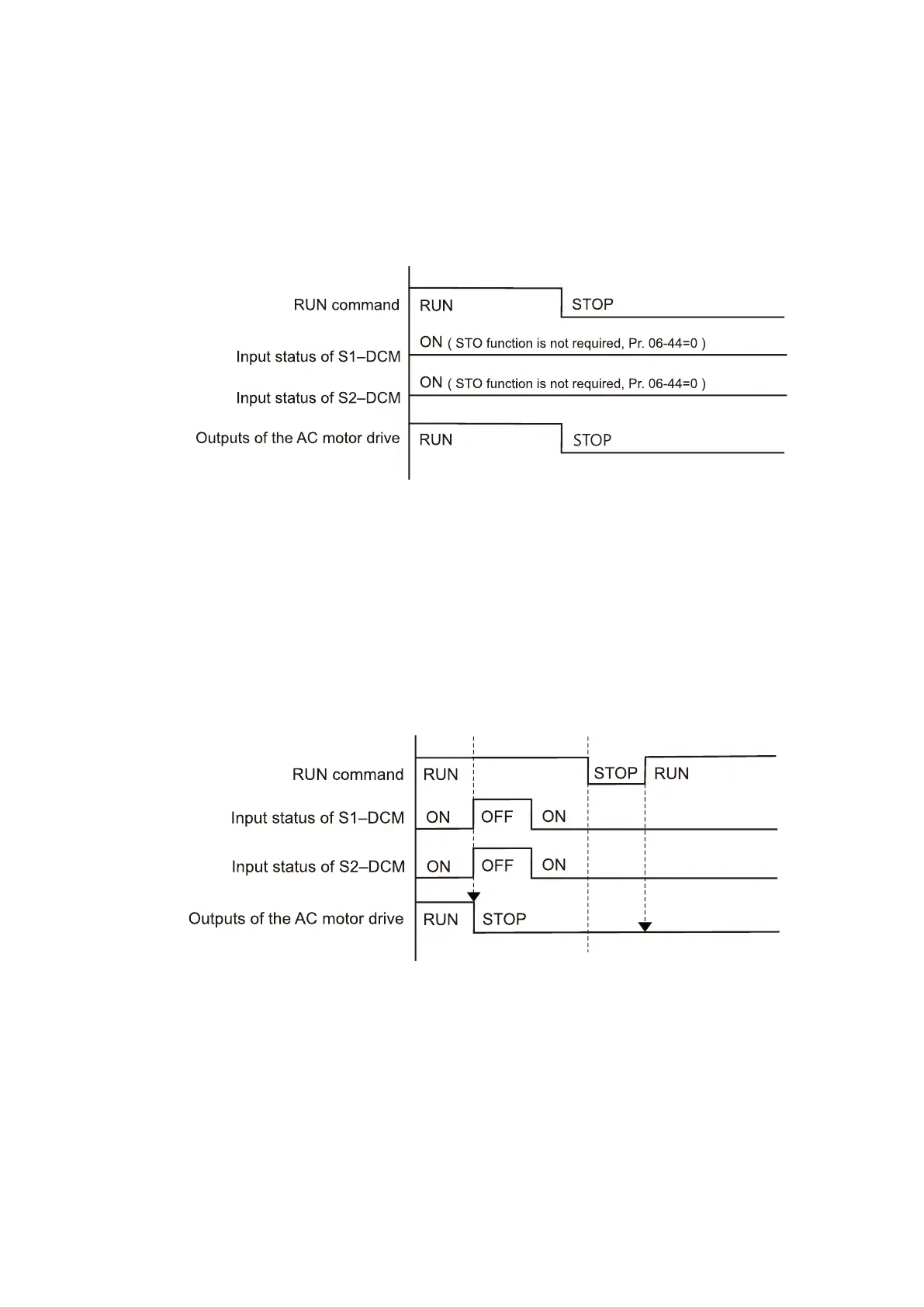 As shown in Figure 17-4, when S1–DCM and S2–DCM is ON (STO function is not required), the drive