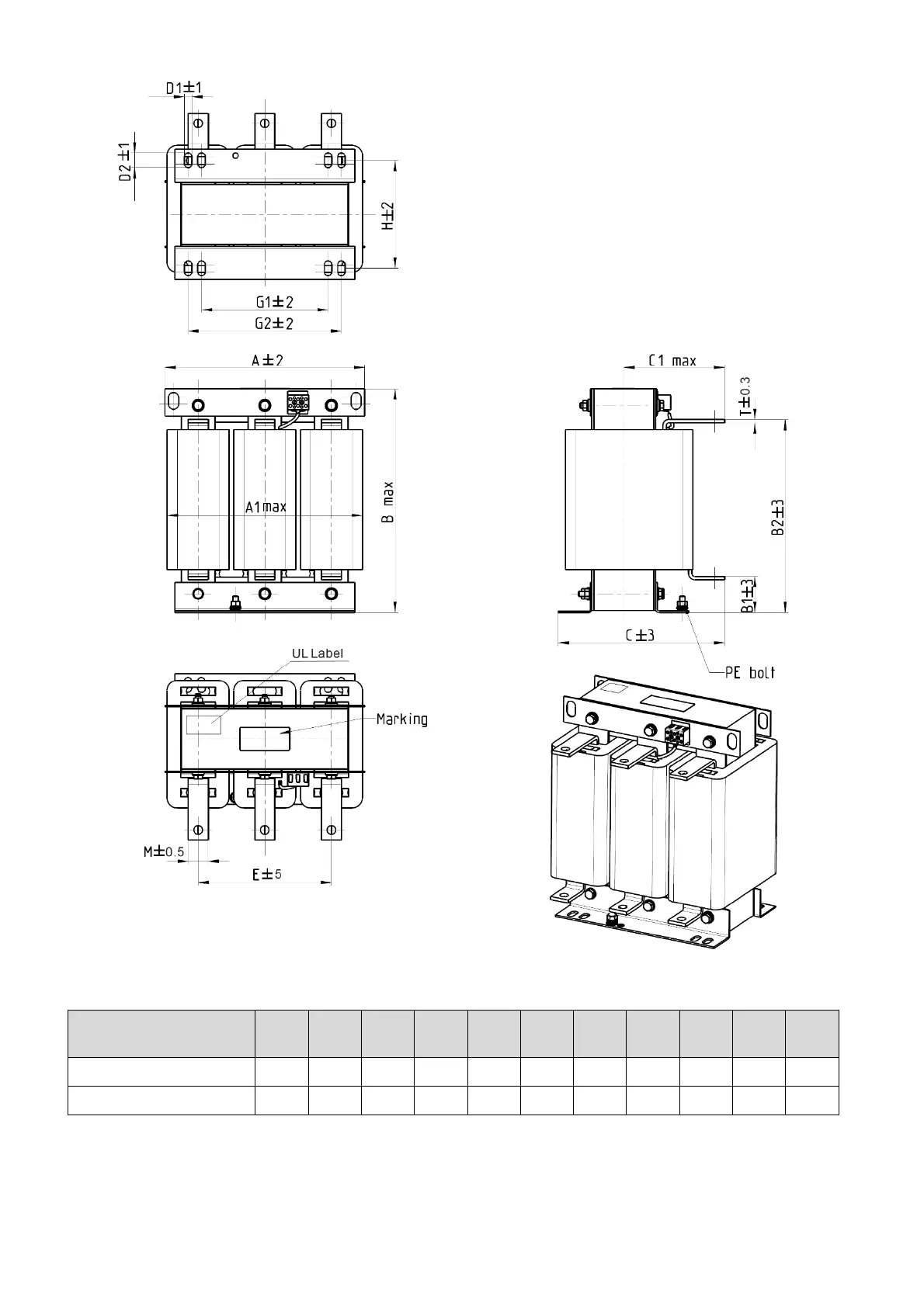 A A1 B B1 B2 C C1 D1*D2 E H M*T