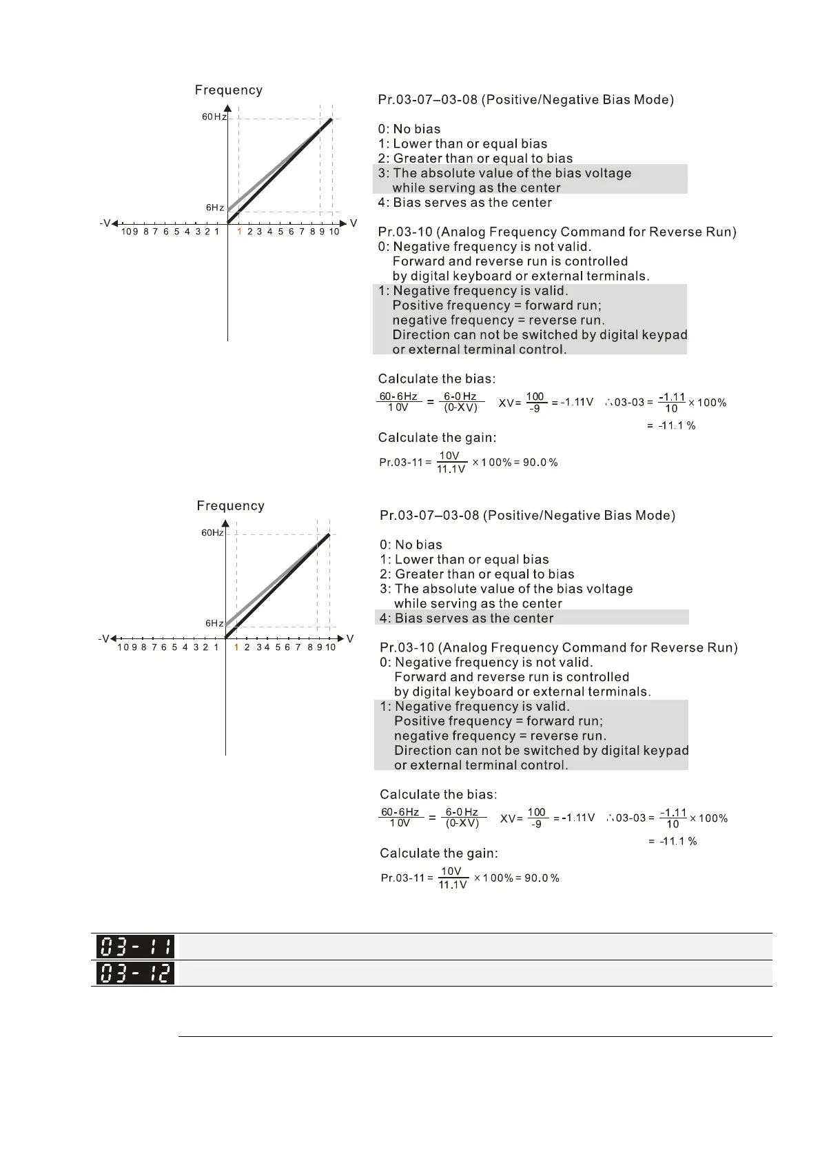 Use Pr.03-03–03-12 when the Frequency command source is the analog voltage or current