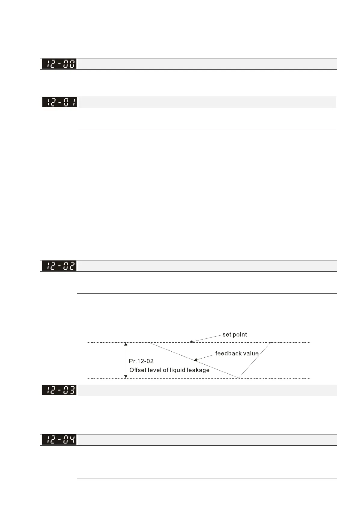 When the deviation is less than Pr.12-00 (in the range of PID set point to Pr.12.00 x PID set point)