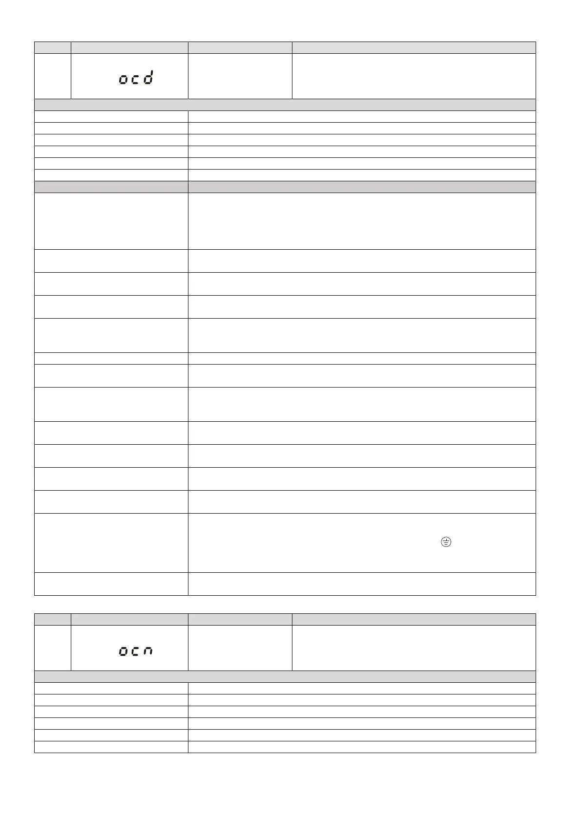 The ocd occurs due to short circuit or ground fault at the output side of the drive.