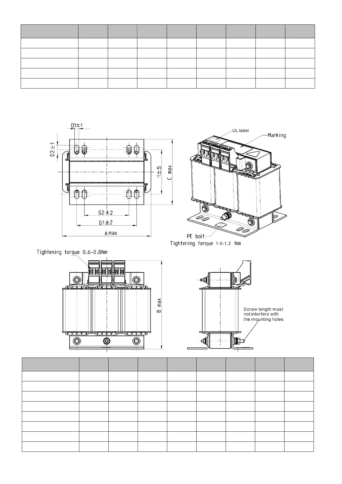 A B C D1*D2 H G1 G2 PE D
