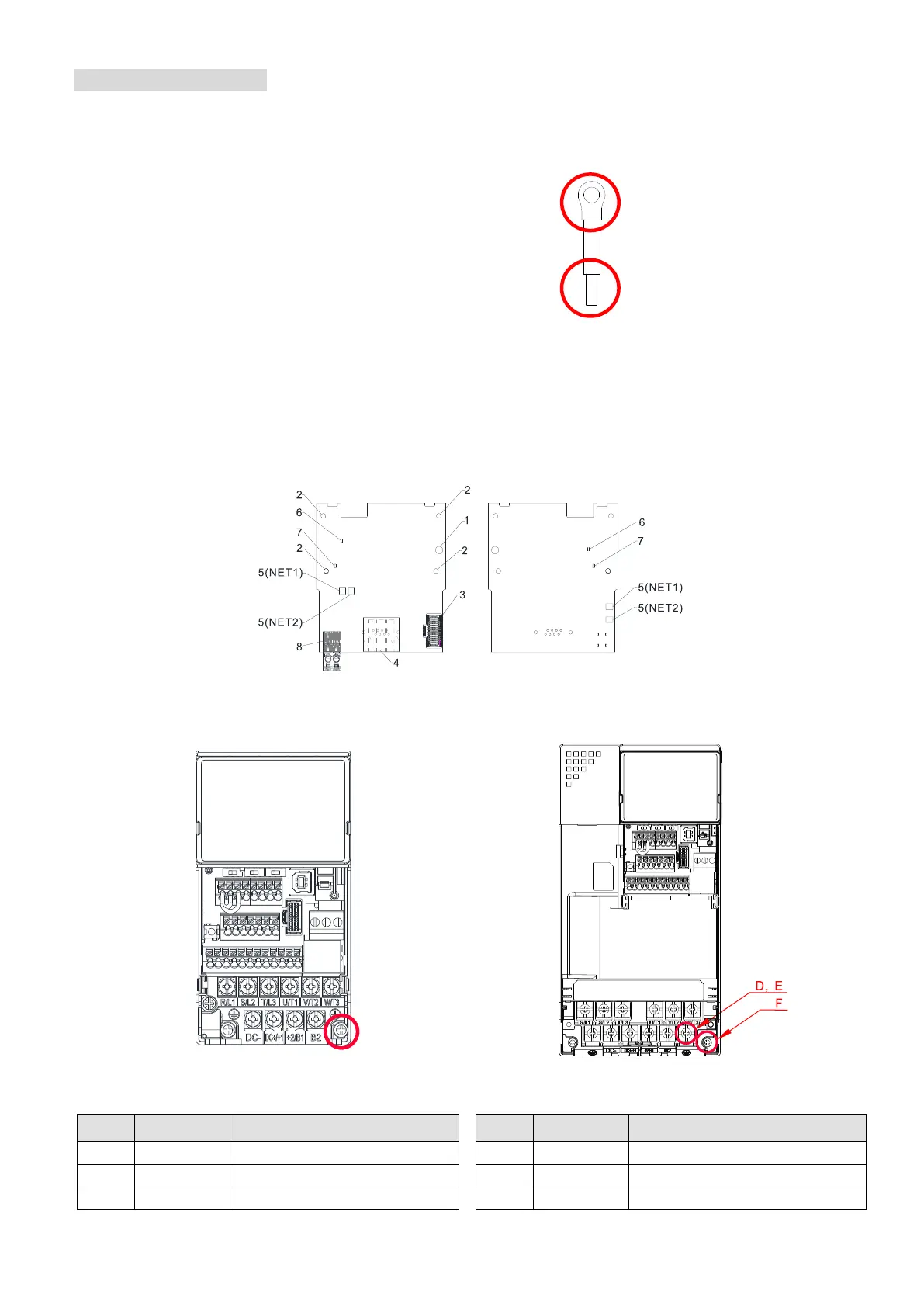 cards). The A end of the grounding wire connects to the drive’s PE, as the circles show in Figure 8-