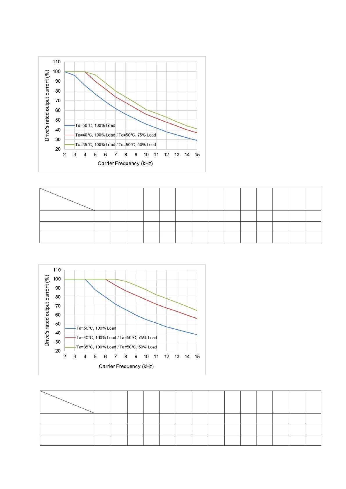 The rated output current (%) of DPWM in normal load for different carrier frequencies: