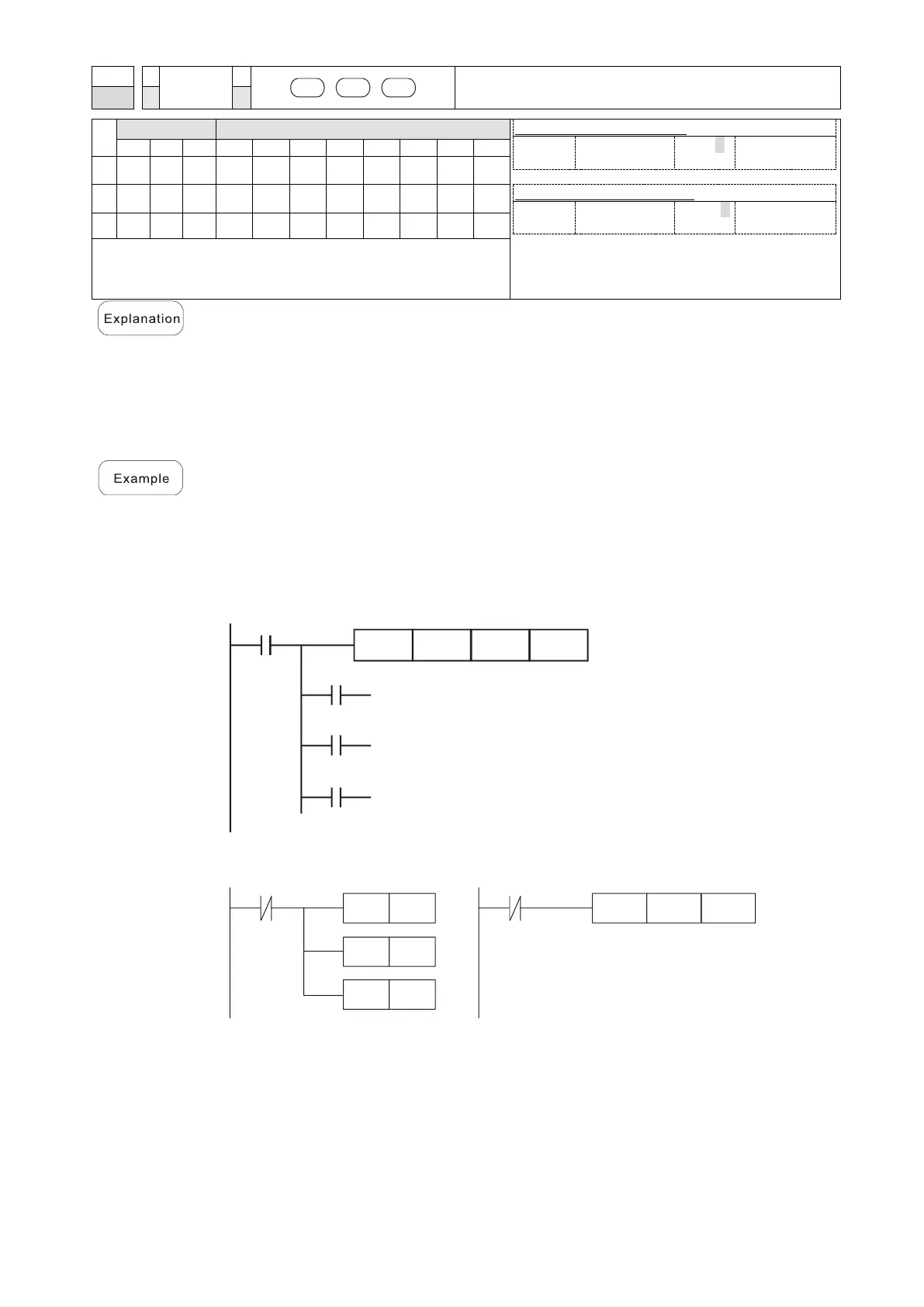 When X10 = ON, the CMP command executes, and Y0, Y1 or Y2 is ON. When
