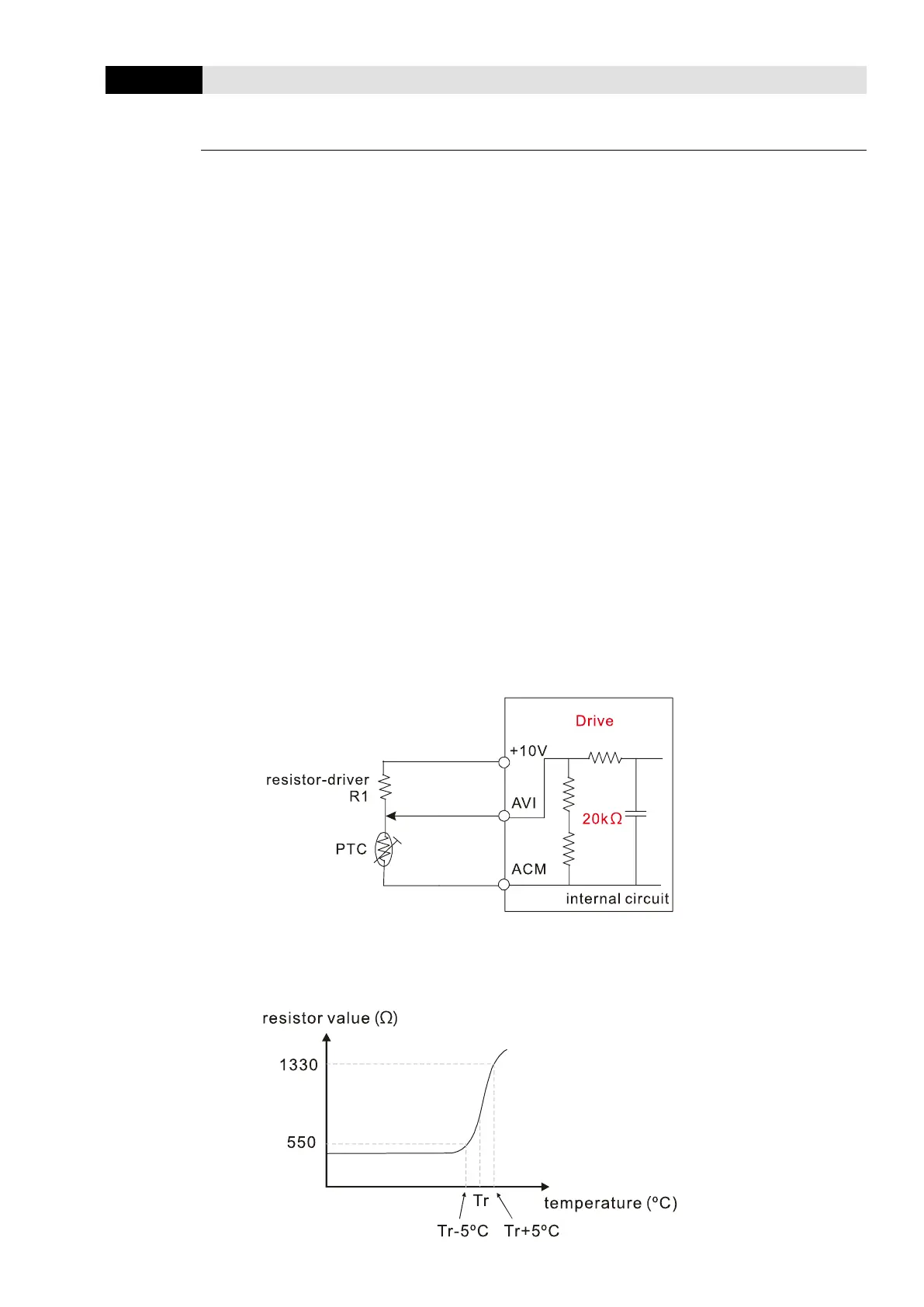 Protection level (Pr.06-30) = V+10 × (RPTC//20K) ÷ [R1+(RPTC//20K)]