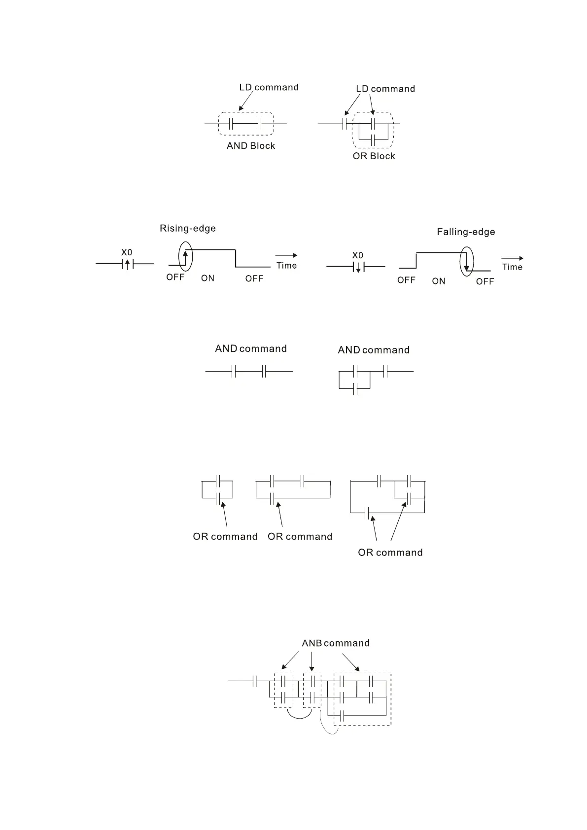 1. LD (LDI) command: An LD or LDI command appears at the start of a block.