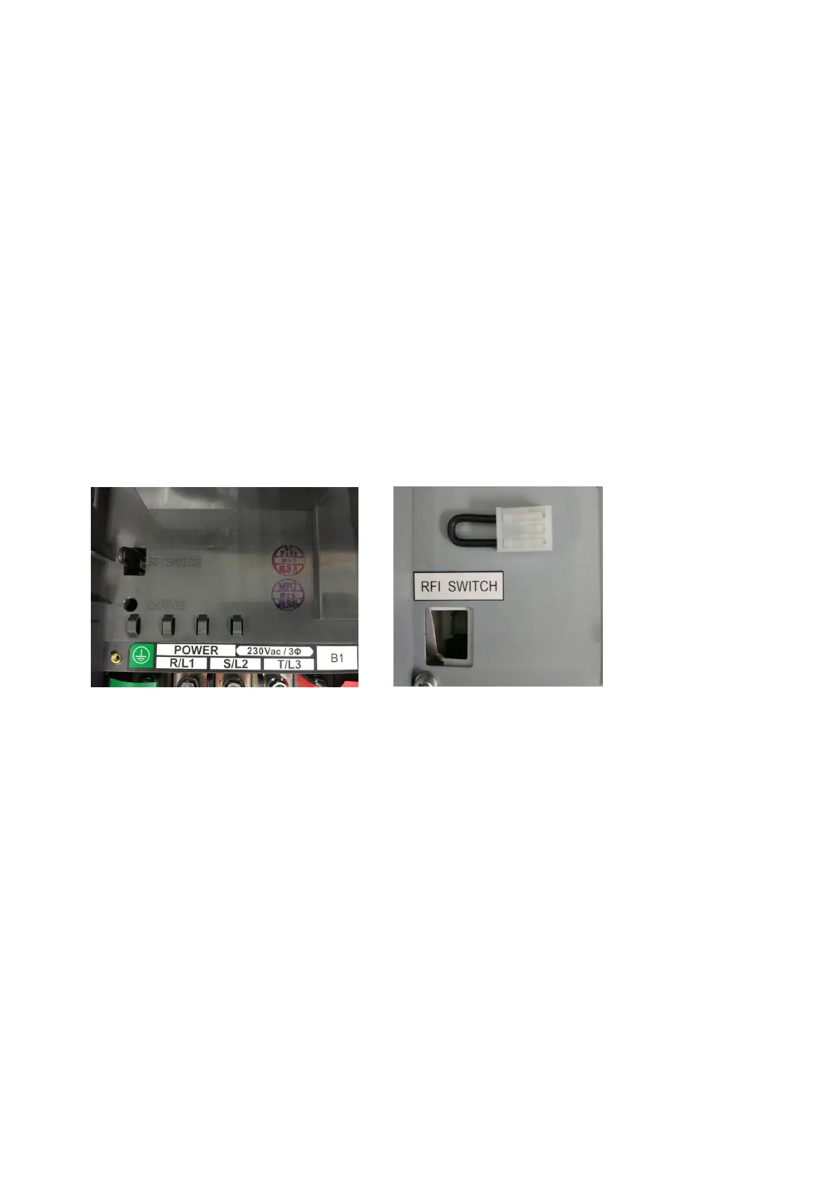 RFI Switch on the motor drive Removable RFI Switch