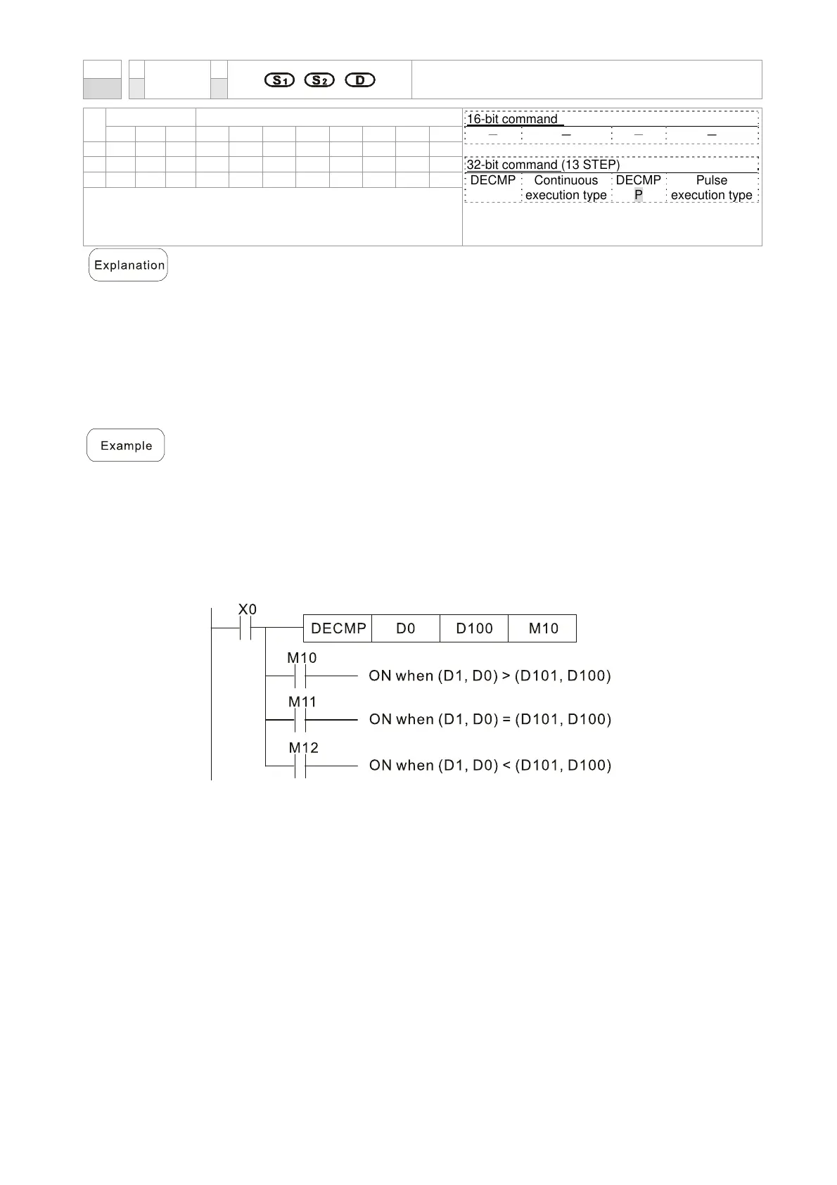 When X0=On, the DECMP command executes, and one of M10–M12 will be On.