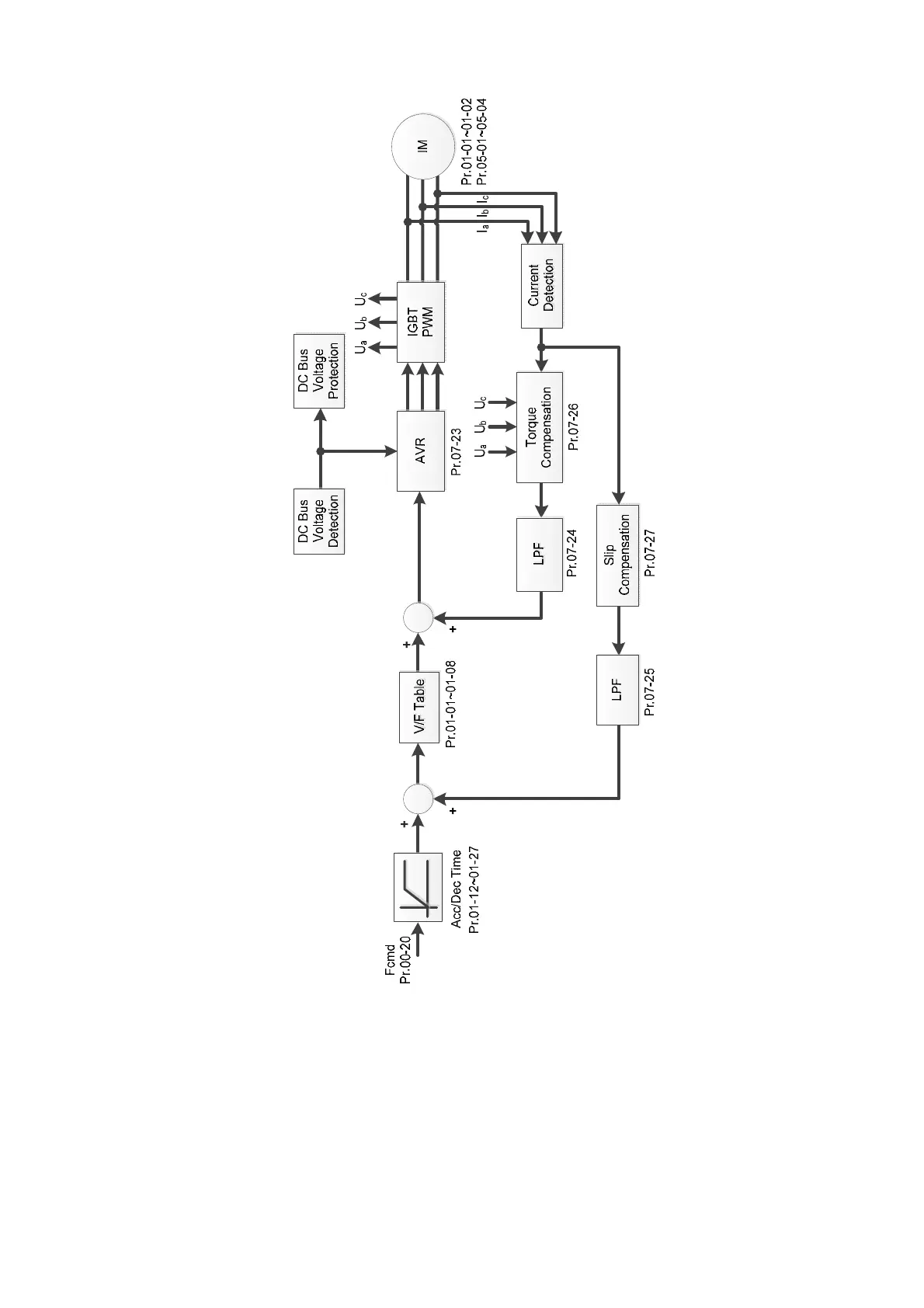When Pr.00-10 = 0, and you set Pr.00-11 to 0, the V/F control diagram is as follows.