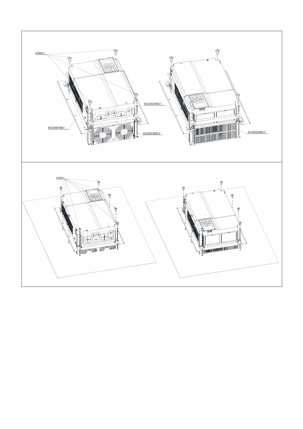 2. Plate installation, place 8 of the screw 2 (M6) through Accessory 1 & 2 and the plate then tighten the screws.