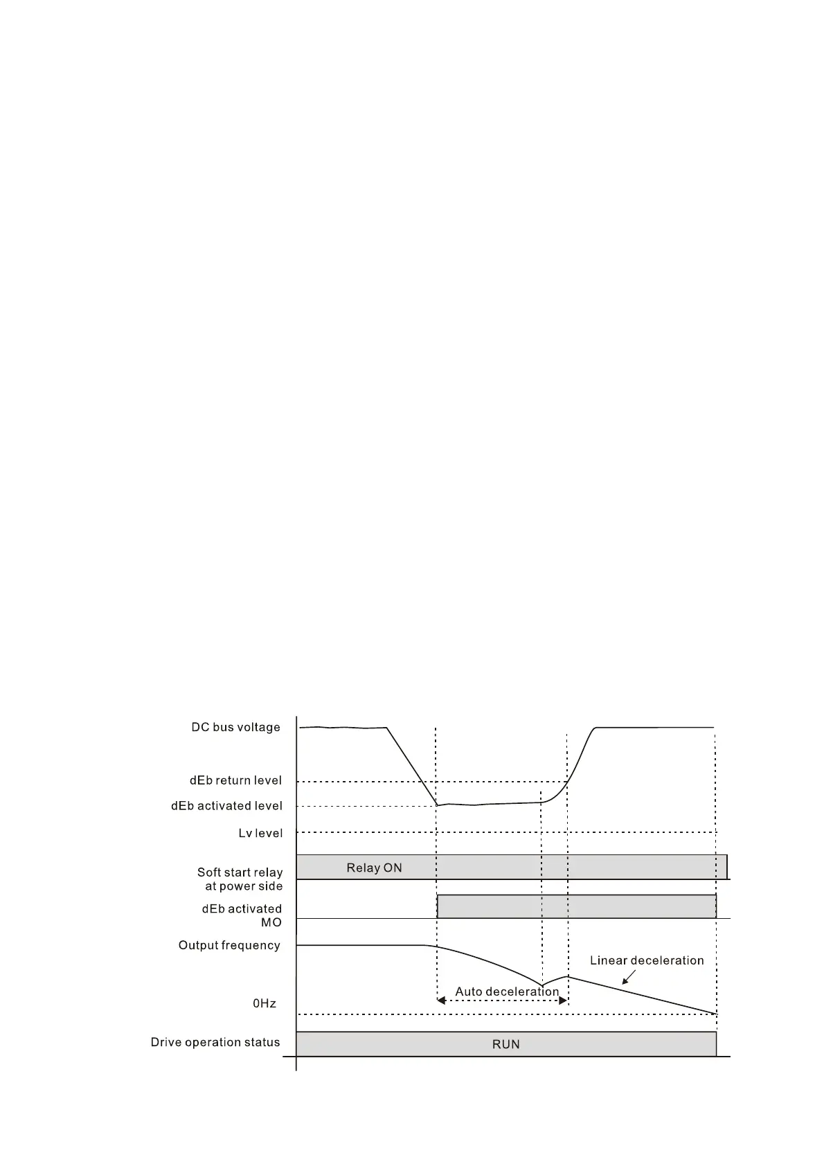 When the DC voltage drops below the dEb setting level, the dEb function starts to work (soft start