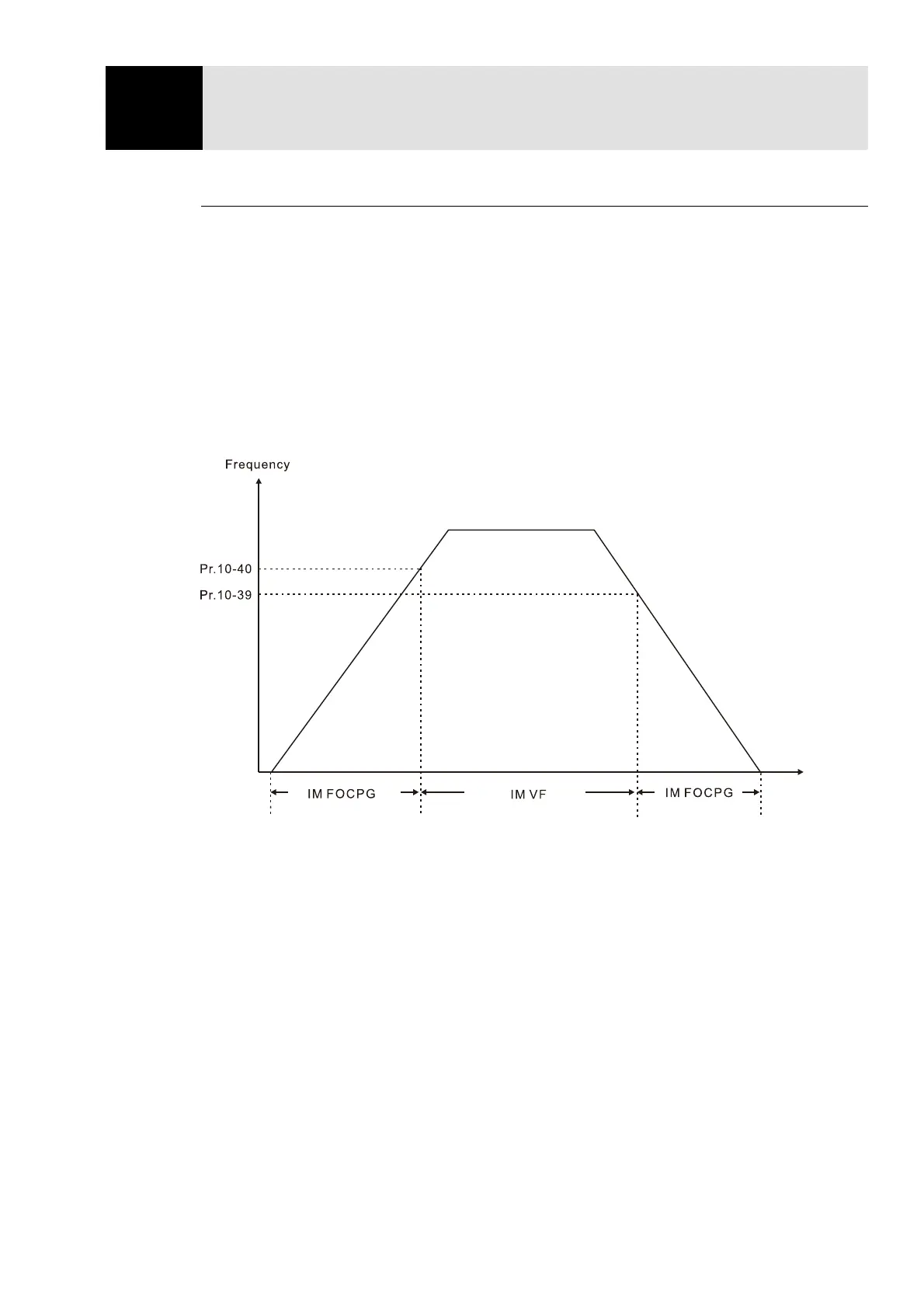 When Pr.11-00 bit11 = 1, Pr.10-40 is the frequency for switching from IMFOCPG to IMVF control