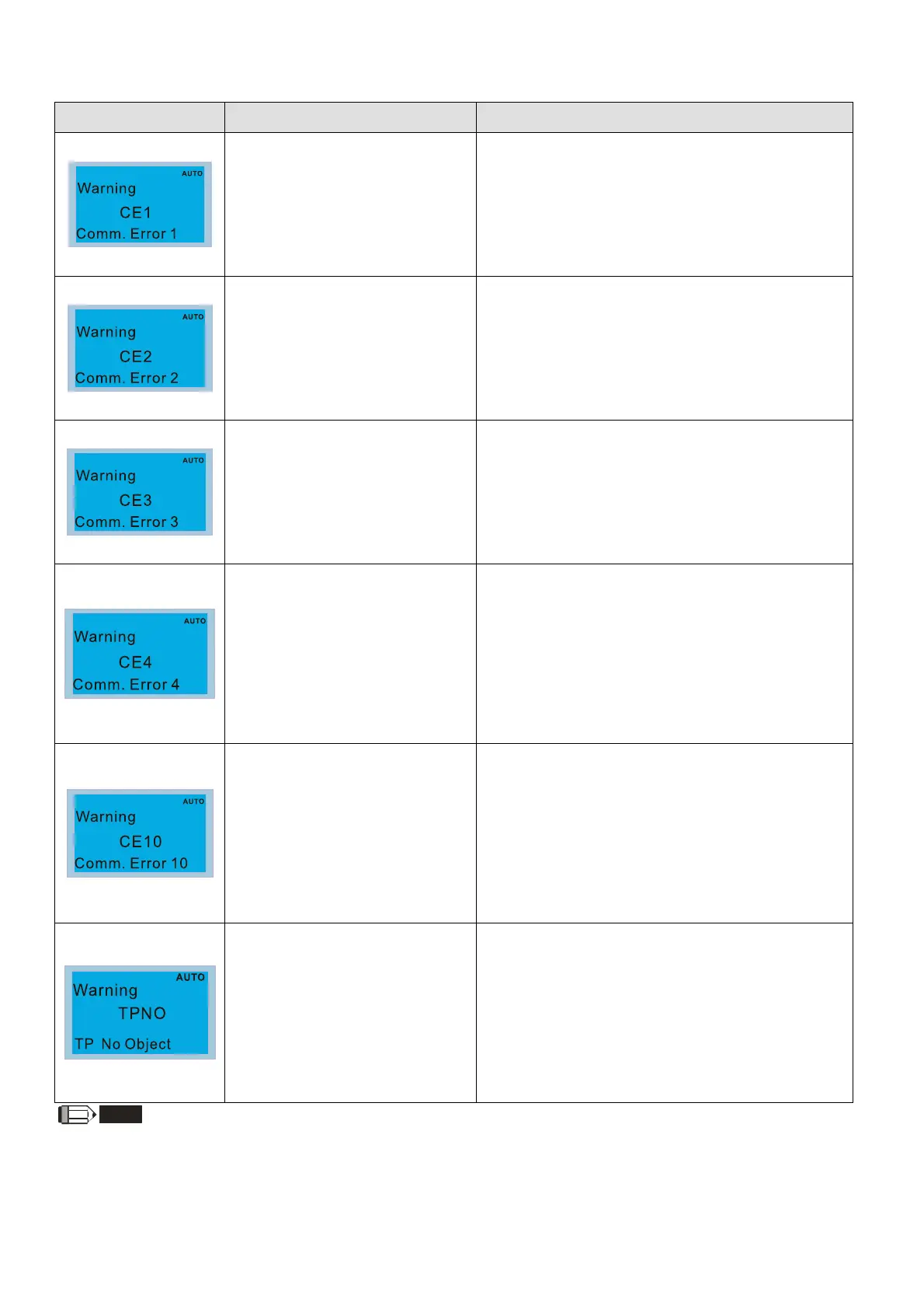 that the warning code description to judge the cause of error if “CExx” occurs.