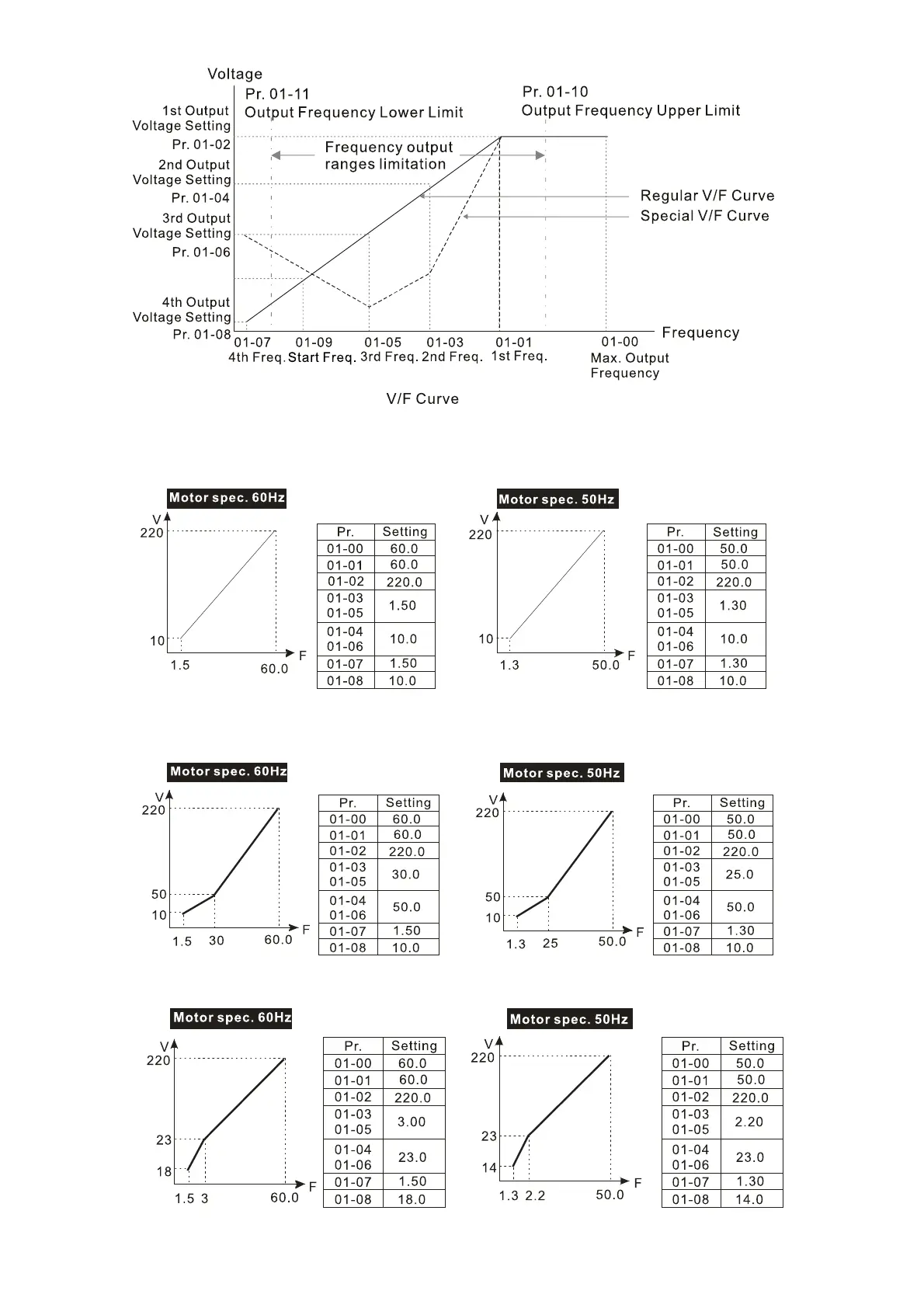 Common settings of the V/F curve: