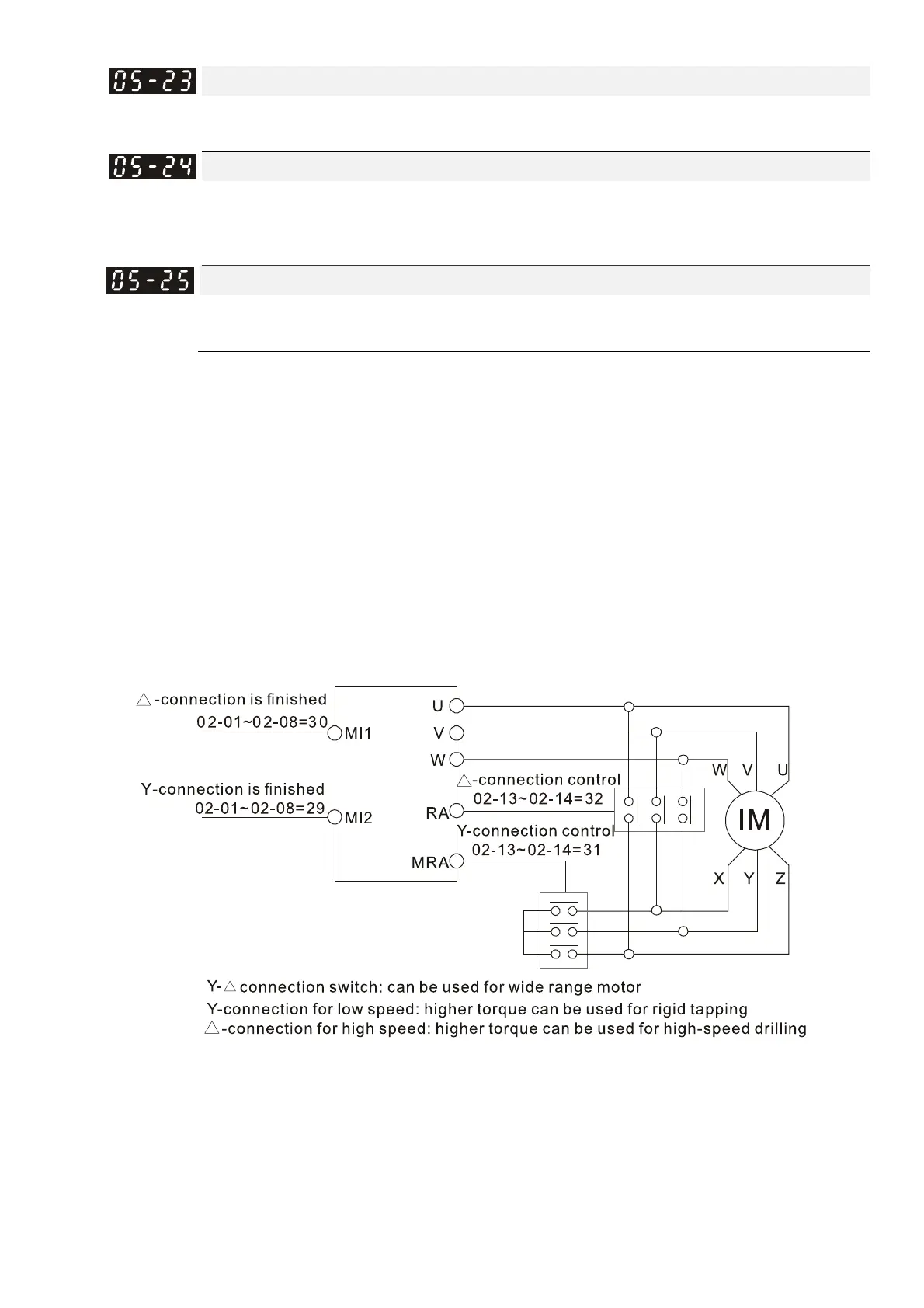 Pr.05-25 sets the switch delay time of Y-connection / -connection.