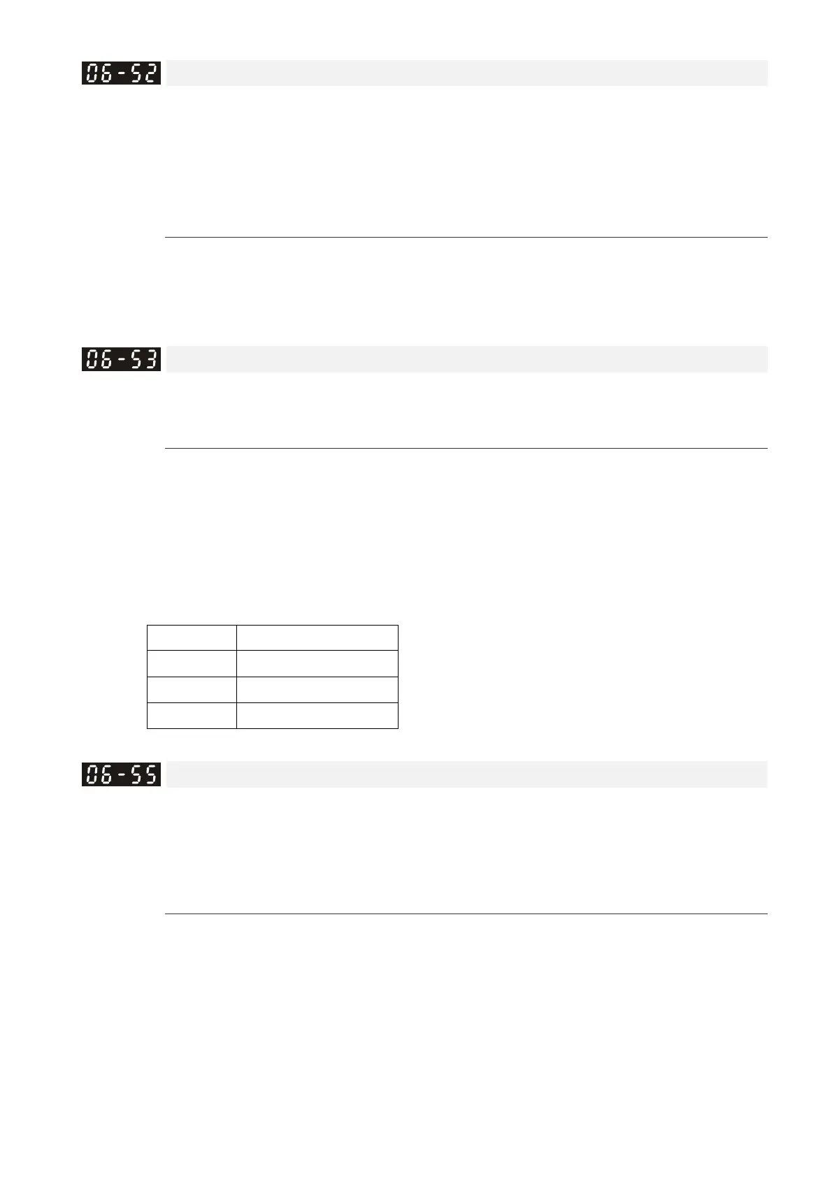 When the DC bus ripple is higher than Pr.06-52, and continues for Pr.06-50 plus 30 seconds, the